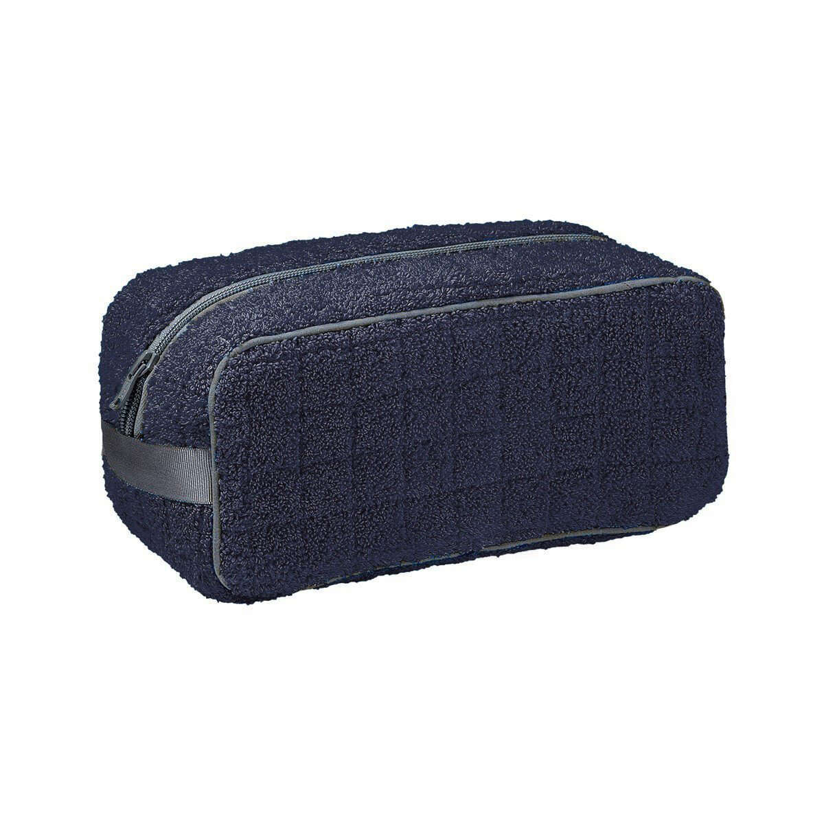 Men's toiletry bag features a zipper closure.
