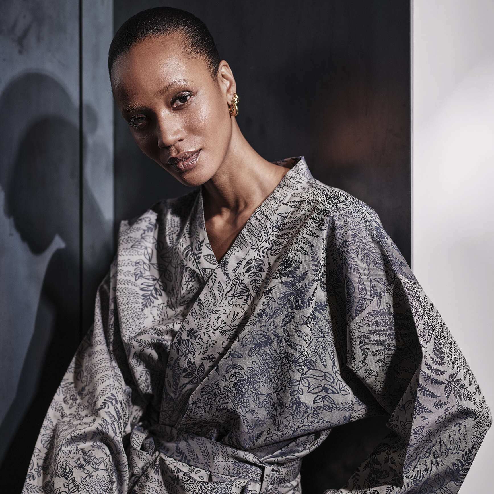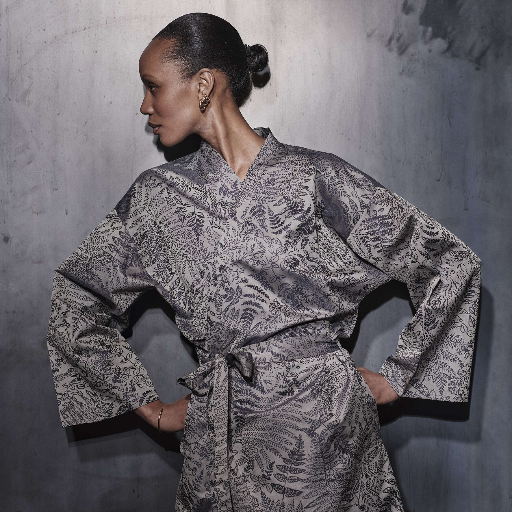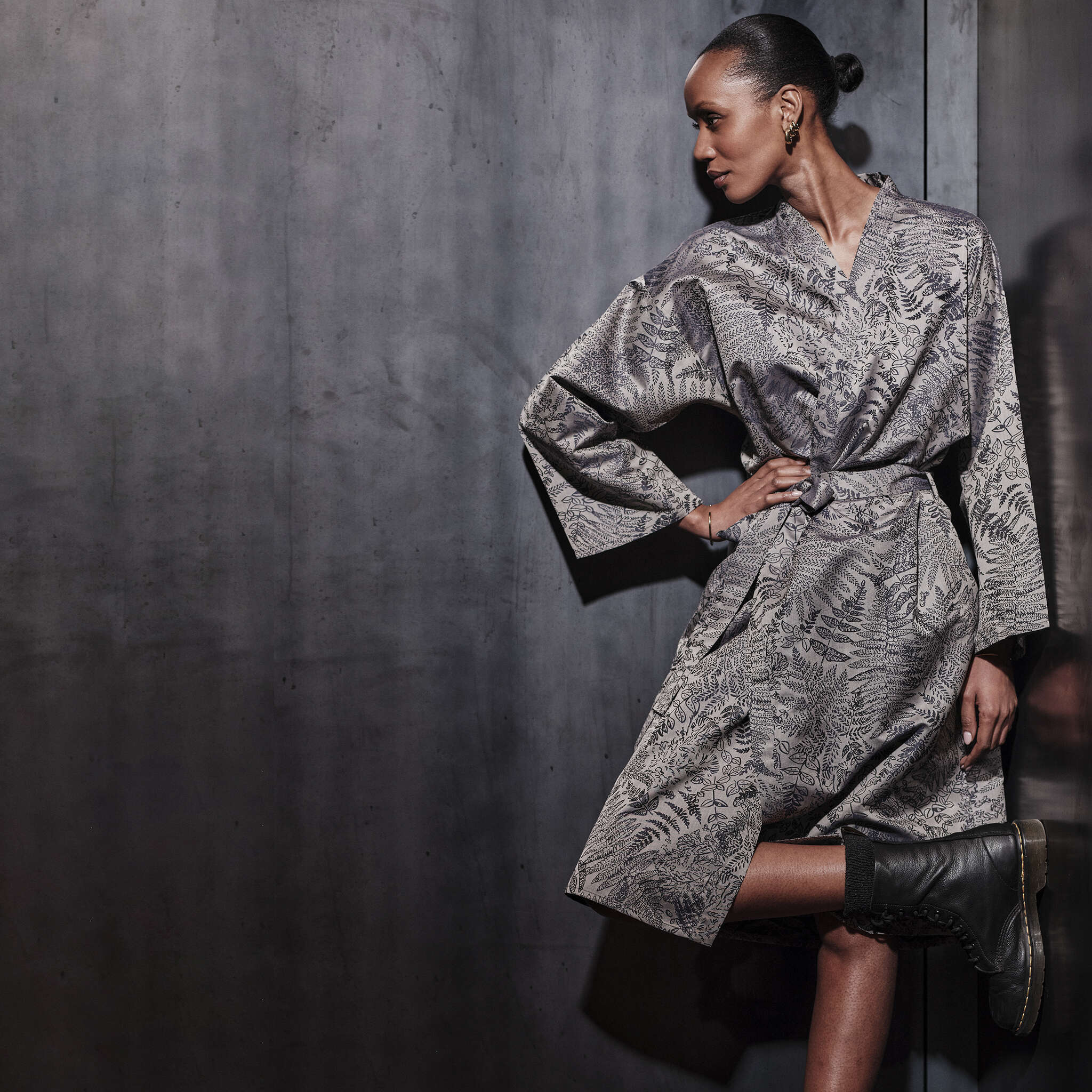 Many millions of years ago, ferns formed vast forests that still exist today. Drawn fern motifs have been condensed into a fascinating design. The result is a wonderfully iridescent fabric on a dark warp that shines in silver. The balanced ratio of warp and weft satin gives Fern a pleasantly soft feel.
