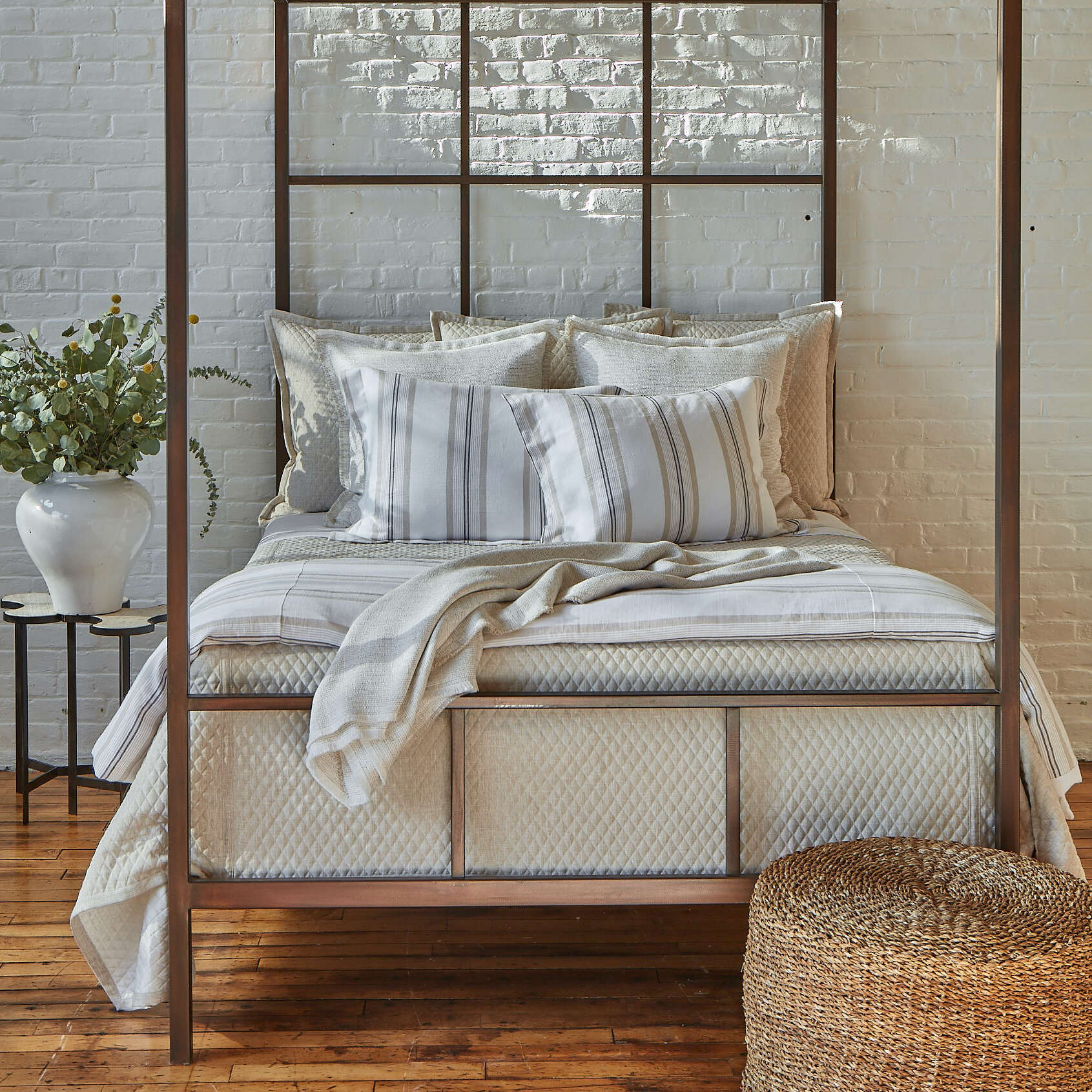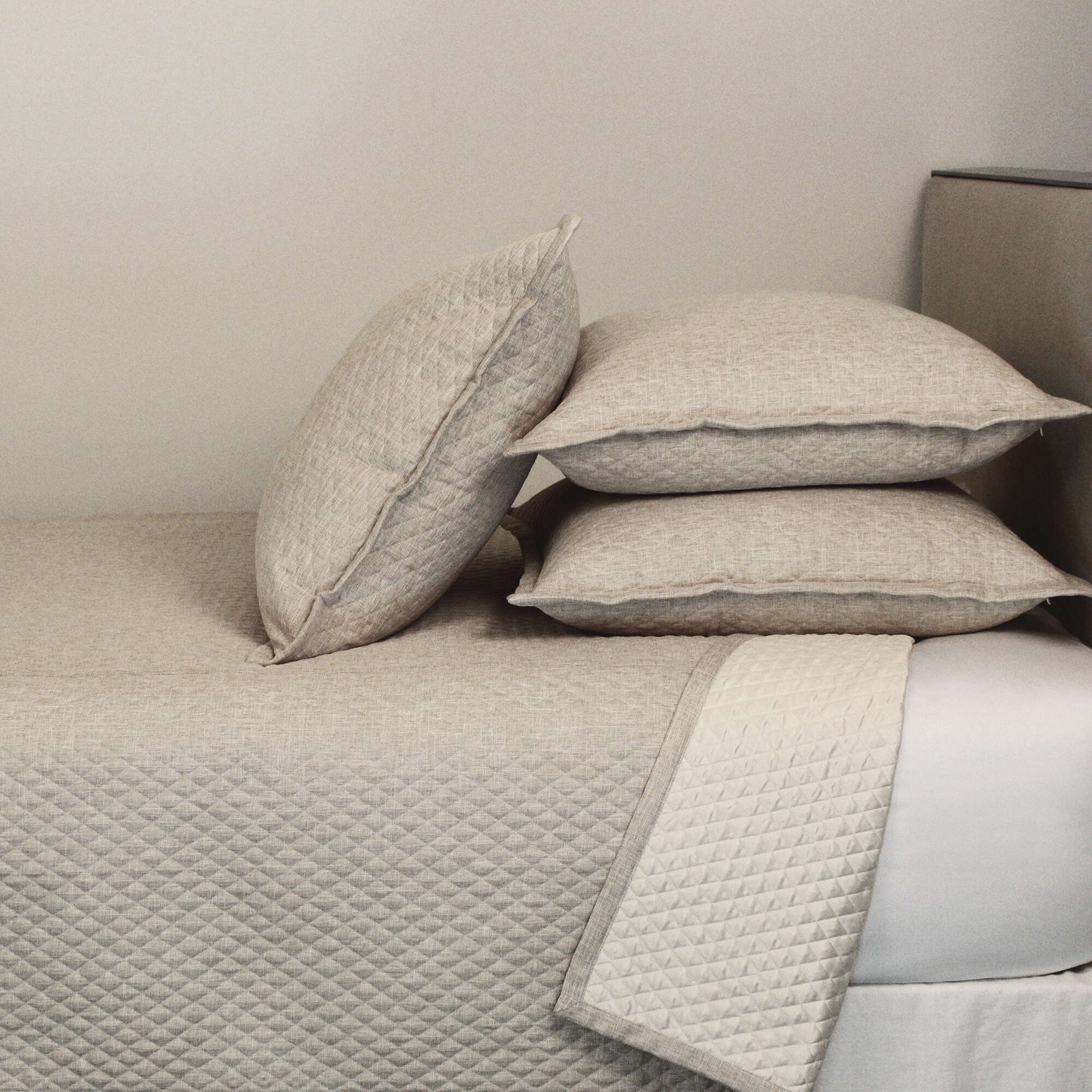 Faux flax is incredibly versatile. Its matte neutral color makes it a beautiful base for many of our duvet sets. It can be dressed up with decorative pillows.