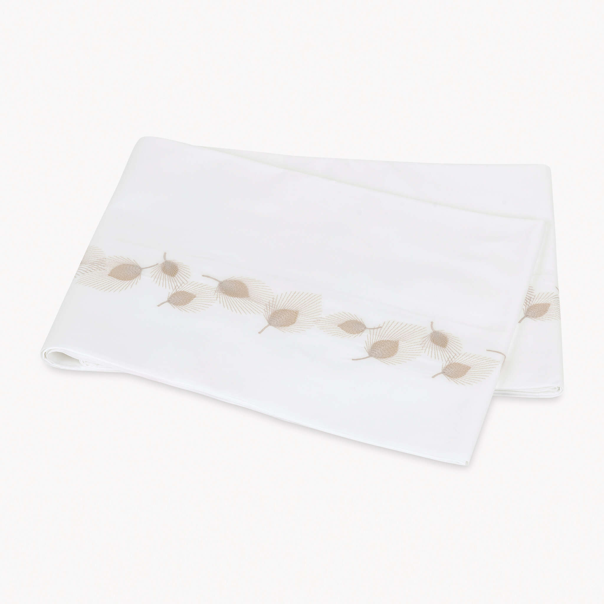 Pairing classic Matouk embellishment techniques with our finest Giza Egyptian cotton percale, Feather is one of our most exquisite designs. A unique combination of appliqué and embroidered details adorns our luxurious Gatsby 1000 thread count sheeting, creating a bed of unmatched quality, craftsmanship, and elegance.