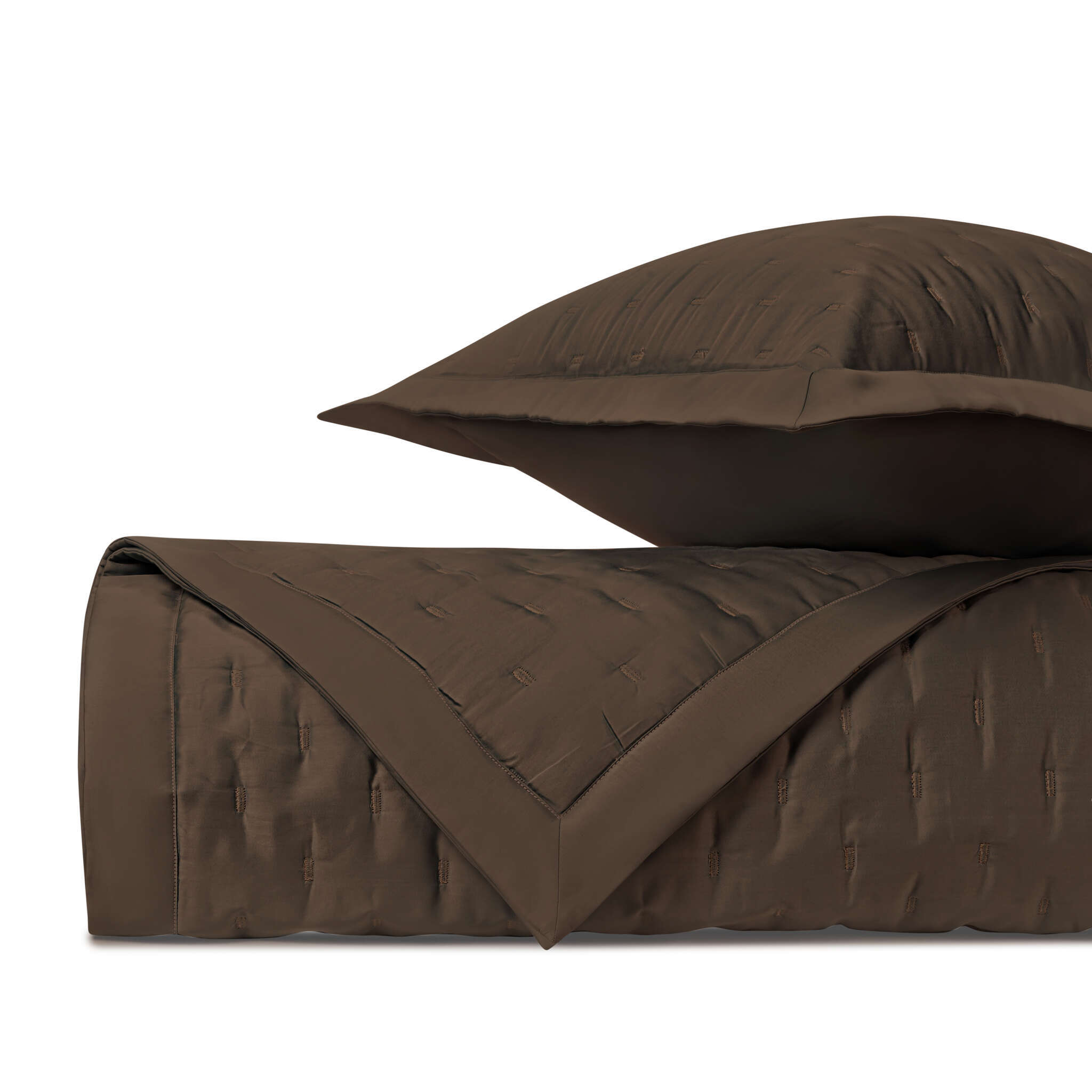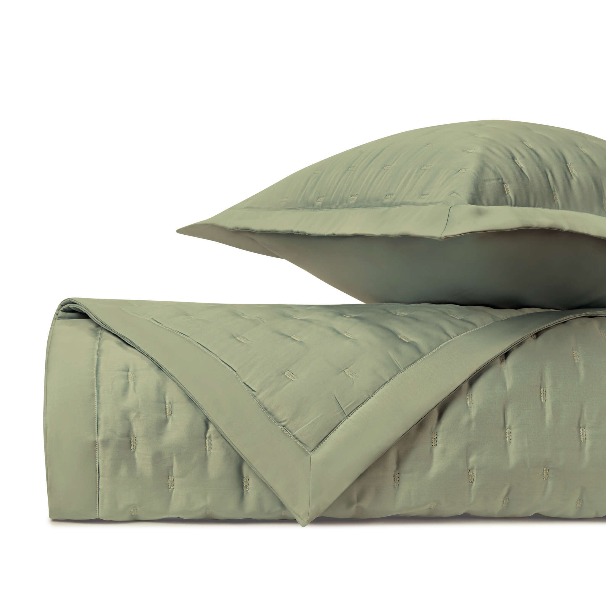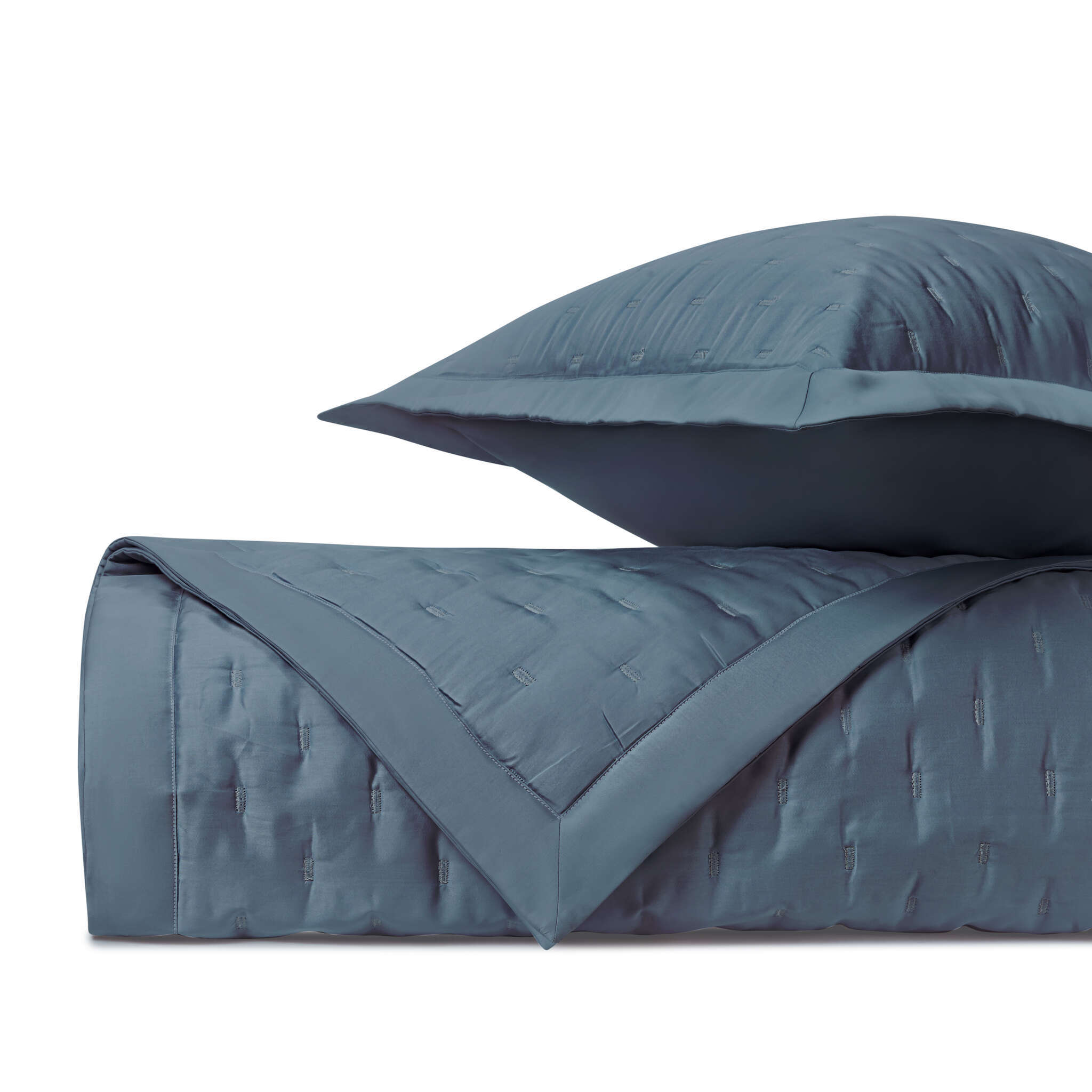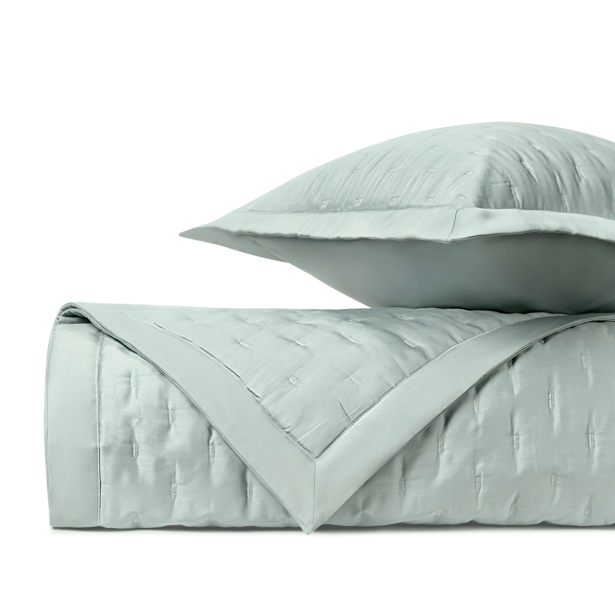Our classic royal sateen quilted coverlets, in Fil Coupé pattern, are finished with a solid 2" border.