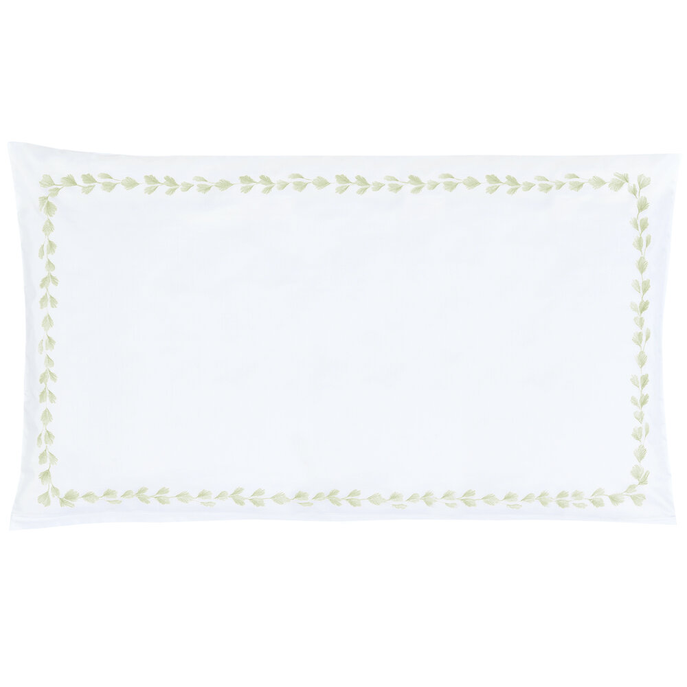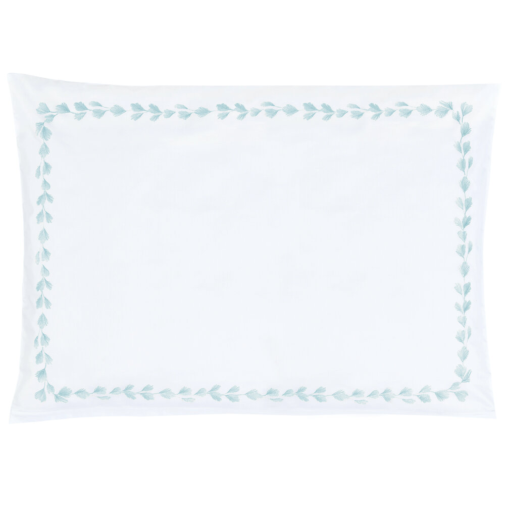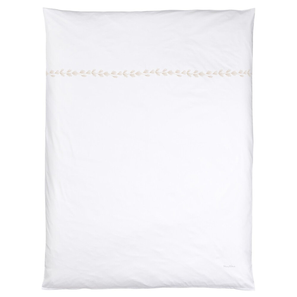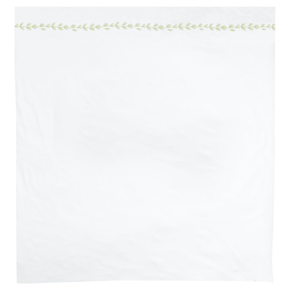 The delicate embellishments on our Foglia bed linen are a homage to classic embroidery and reminiscent of feathers. Two-tone rayon yarn in shades of gold and silver looks both exceptionally light and three-dimensional on our Swiss-Cotton satin. The graceful shapes subtly frame the pillowcase and wind their way across the duvet cover. The bed linen is hand-embroidered by our long-standing partner. Foglia is an enigmatic and versatile design which complements both classic elegance and urban minimalism.