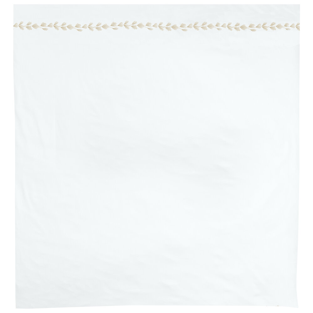 Duvet Covers: Traditional, embroidery 20 inches from head of duvet. U-Frame embroidery.