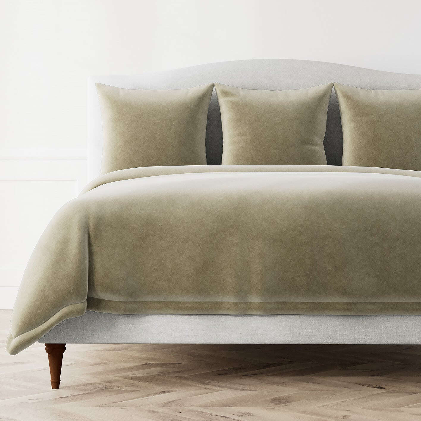 Inspired by the richness of soft pigments on plaster, our Fresco Velvet is made of 100% cotton. Completely washable, the tailored construction of the duvets, shams, and pillows in this collection makes great foundations for our accent pieces.