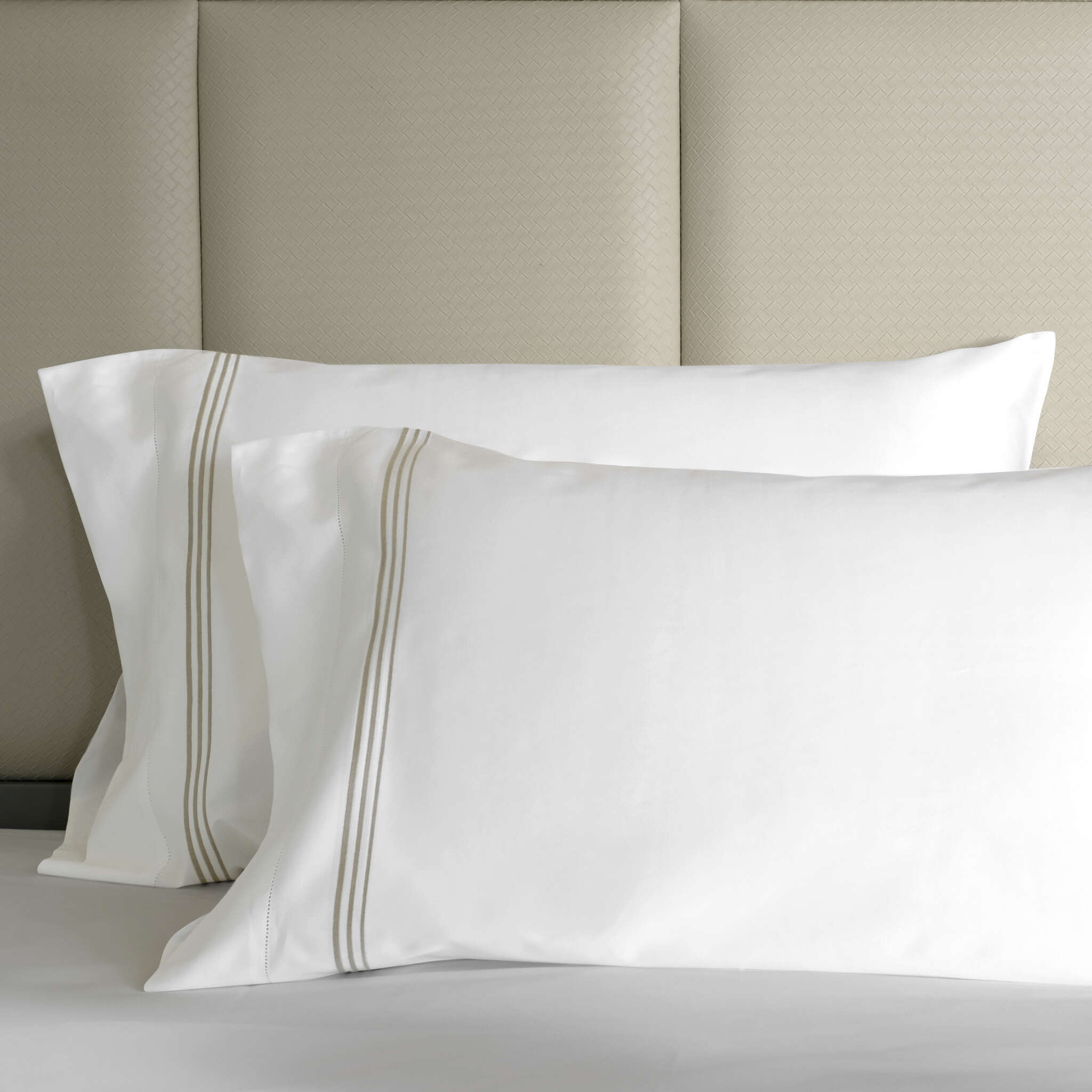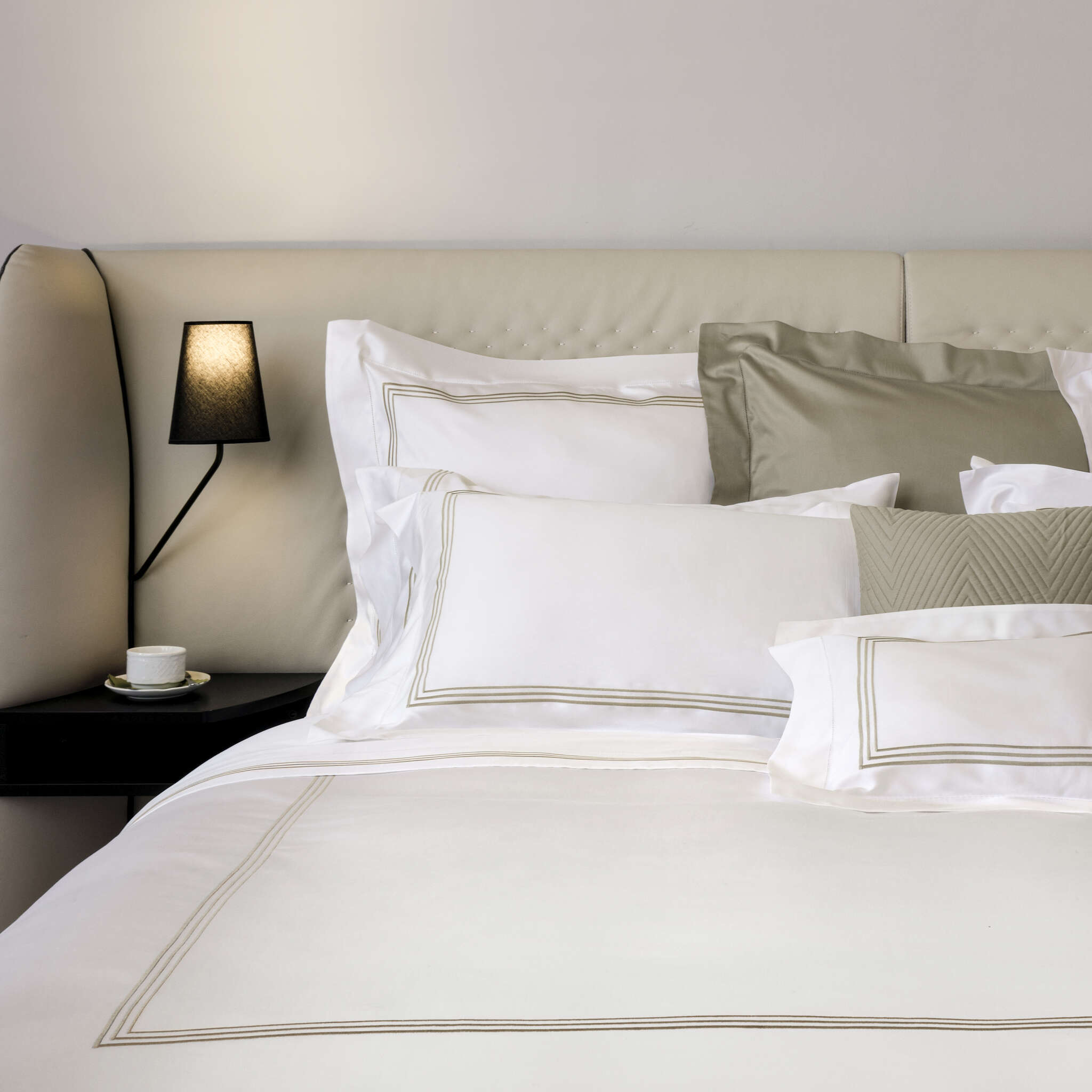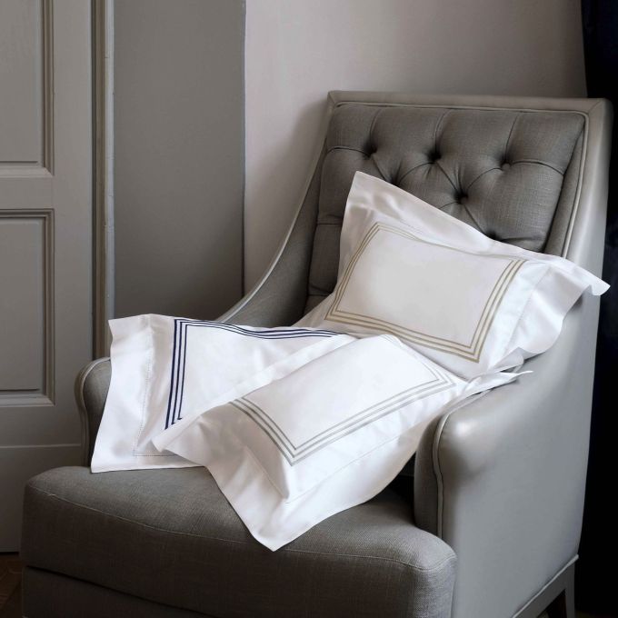 Signoria has created the Granduca collection thinking of the perfect combination of the finest high-quality Cotton fabric and Tuscan craftsmanship. The elegant hemstitch and the three embroidered lines of different thickness meet the Nuvola Percale 600 fabric that, thanks to the renowned Italian textile finishing techniques, becomes even more soft and silky maintaining the crisp hand and breathability appreciated by the percale lovers.