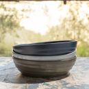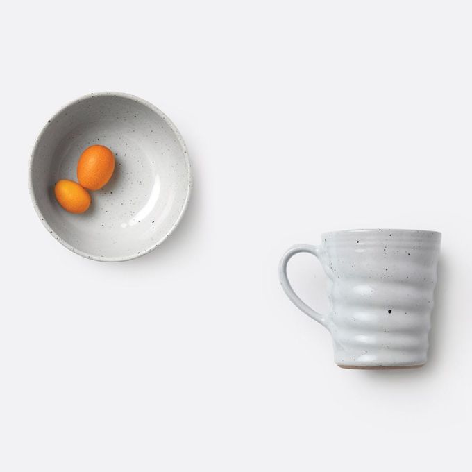 Pair together for the perfect breakfast set, or mix-and-match to create a relaxed coffee house-style collection. These mugs beg to be held and enjoyed, with soft-ridged grips as soothing as the warm beverages contained within. White Salt Glaze and Gray Salt Glaze natural finishes vary with each piece. Matte Navy has a calming appeal.