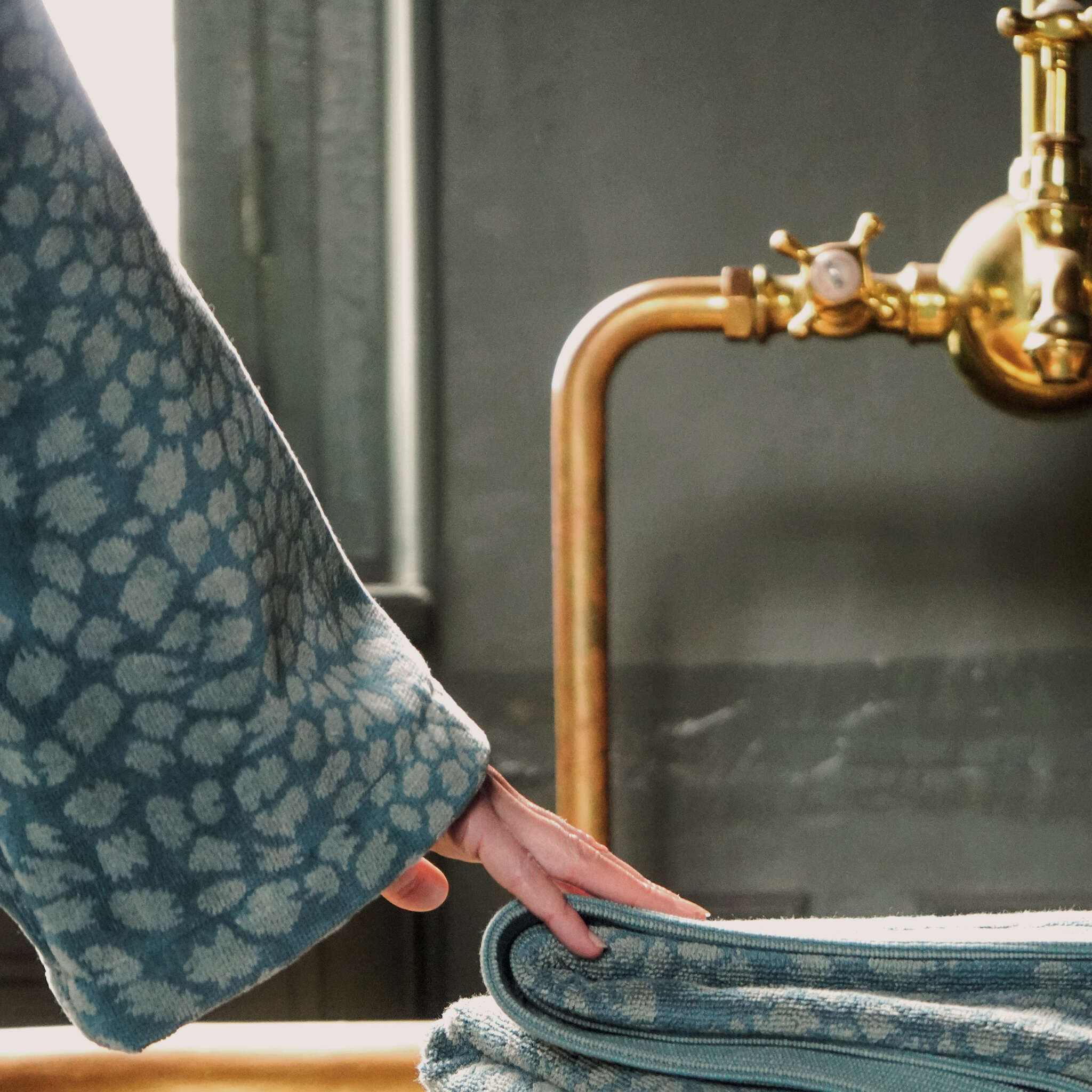 Imaginaire bathrobes are very luxe. They are made with velvet on the outside and have loopstitch on the inside. Imaginaire bathrobes have a chic hood.