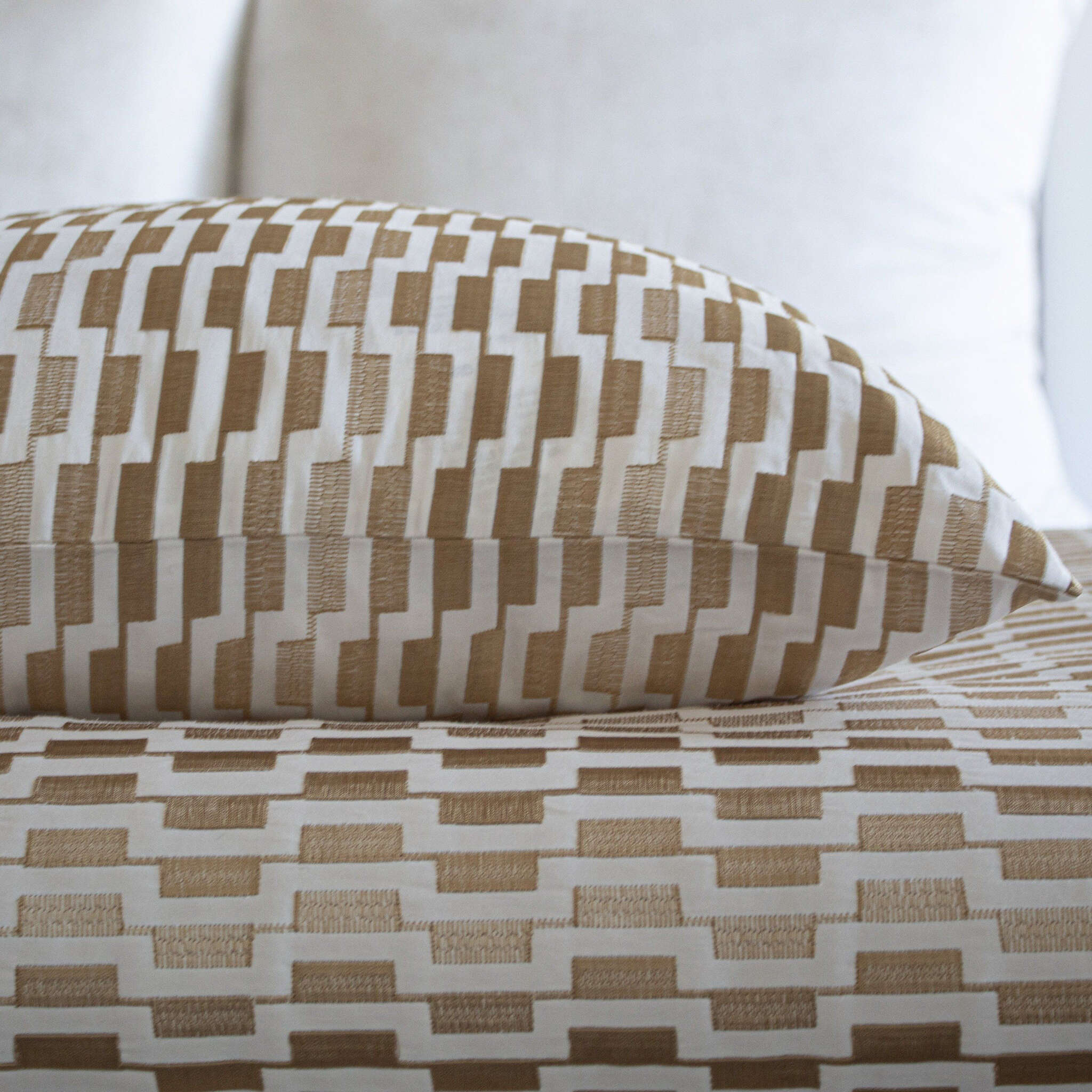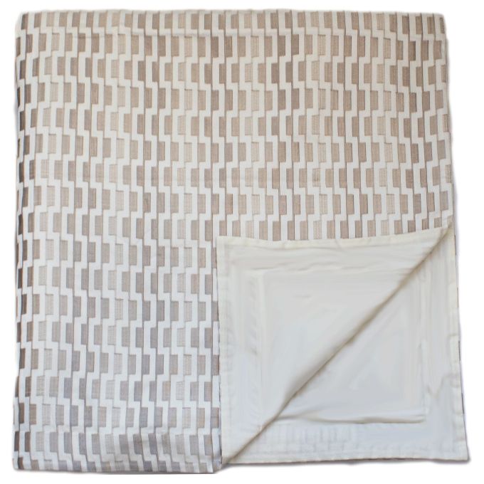 Tiny rectangles of embroidery dance across this 100% cotton fabric. Available in palladium and gold, two very precious metals.