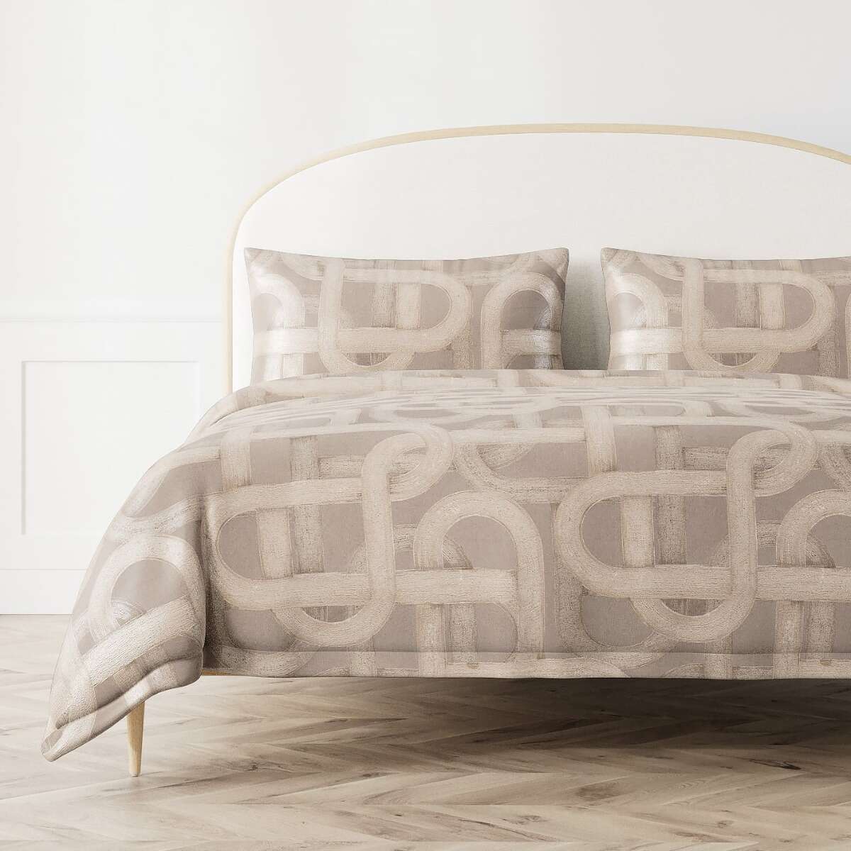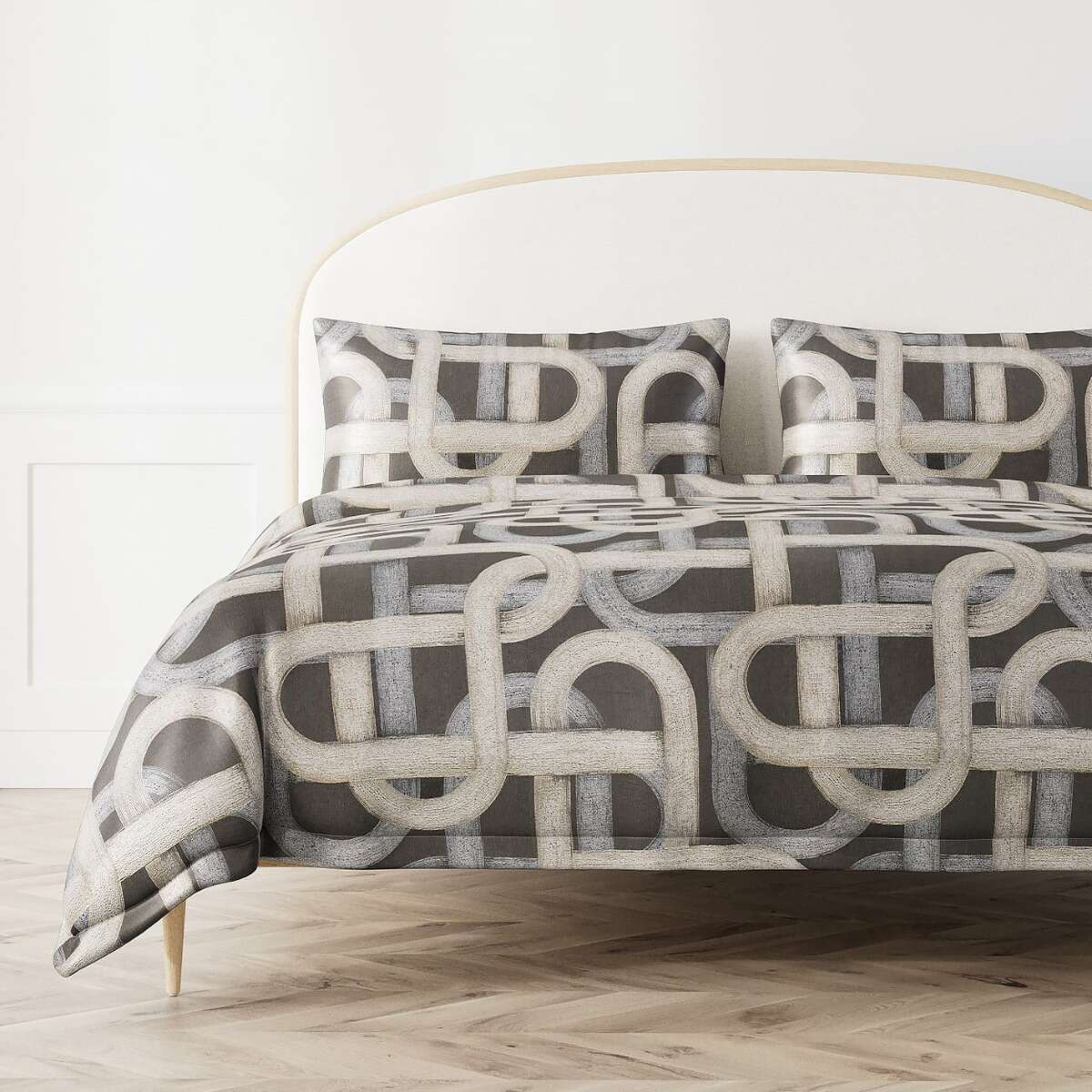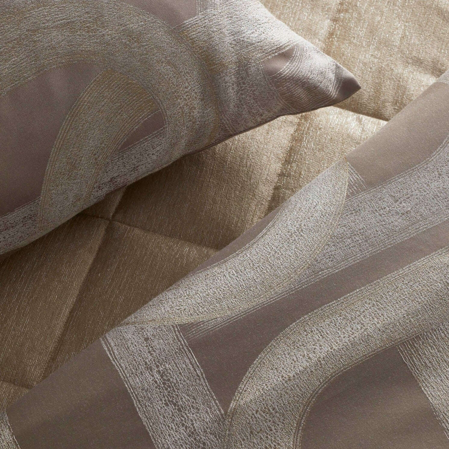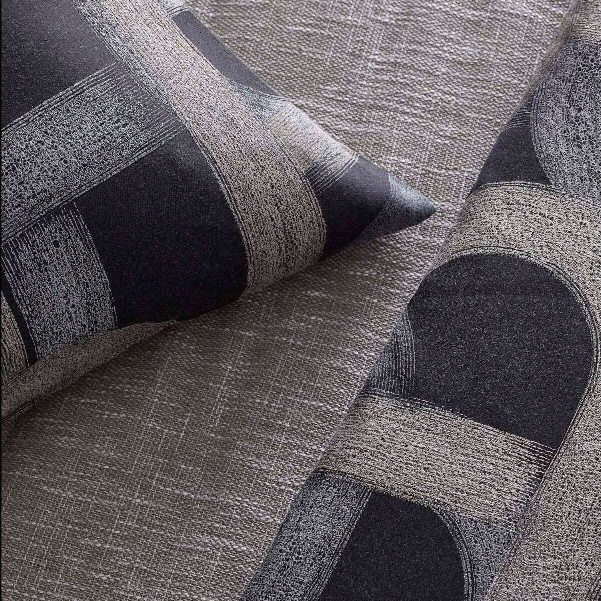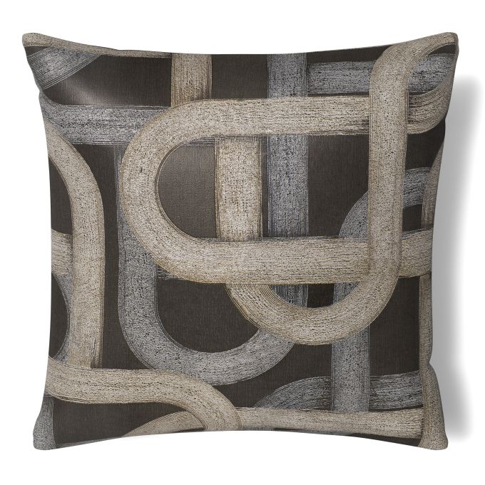 Metal toned strokes bedeck a black, taupe or pearl ground; depicting the curves of the road.