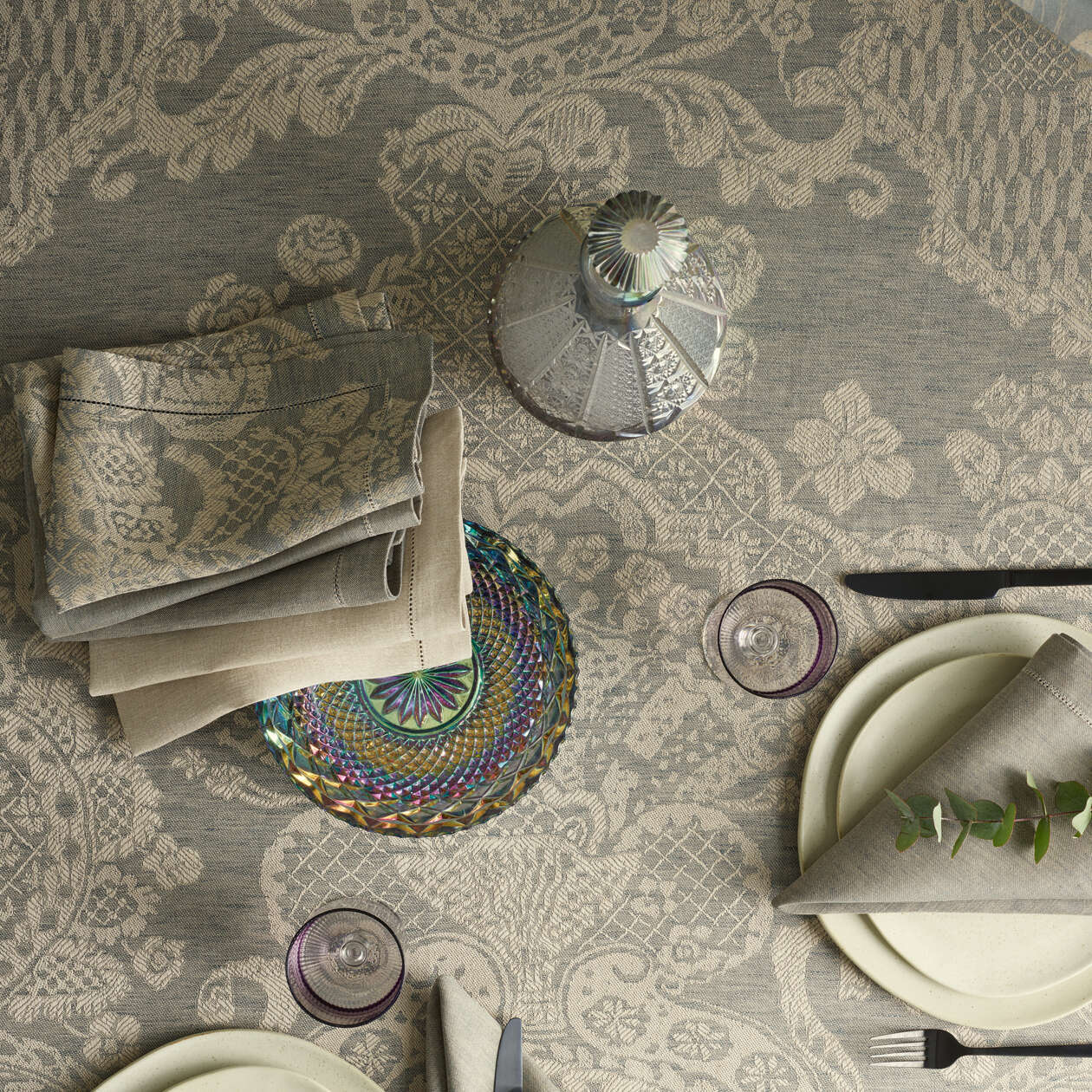 The tablecloth/runner is finished with an ajour hem in our sewing room.