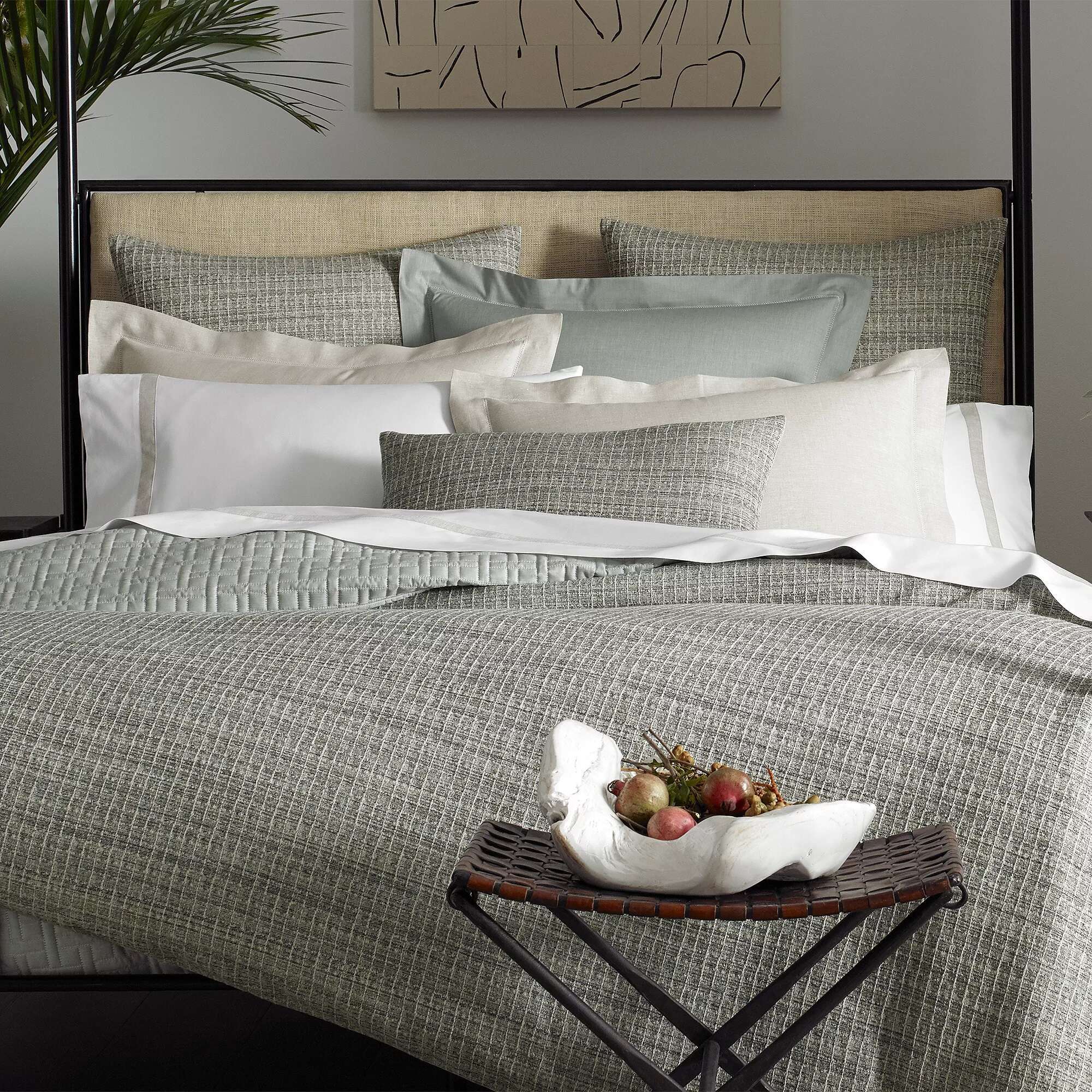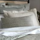 Duvet Covers: Jacqueline on the front of the duvet cover, reversing to Gaia Flax, finished with a knife edge and zipper closure.