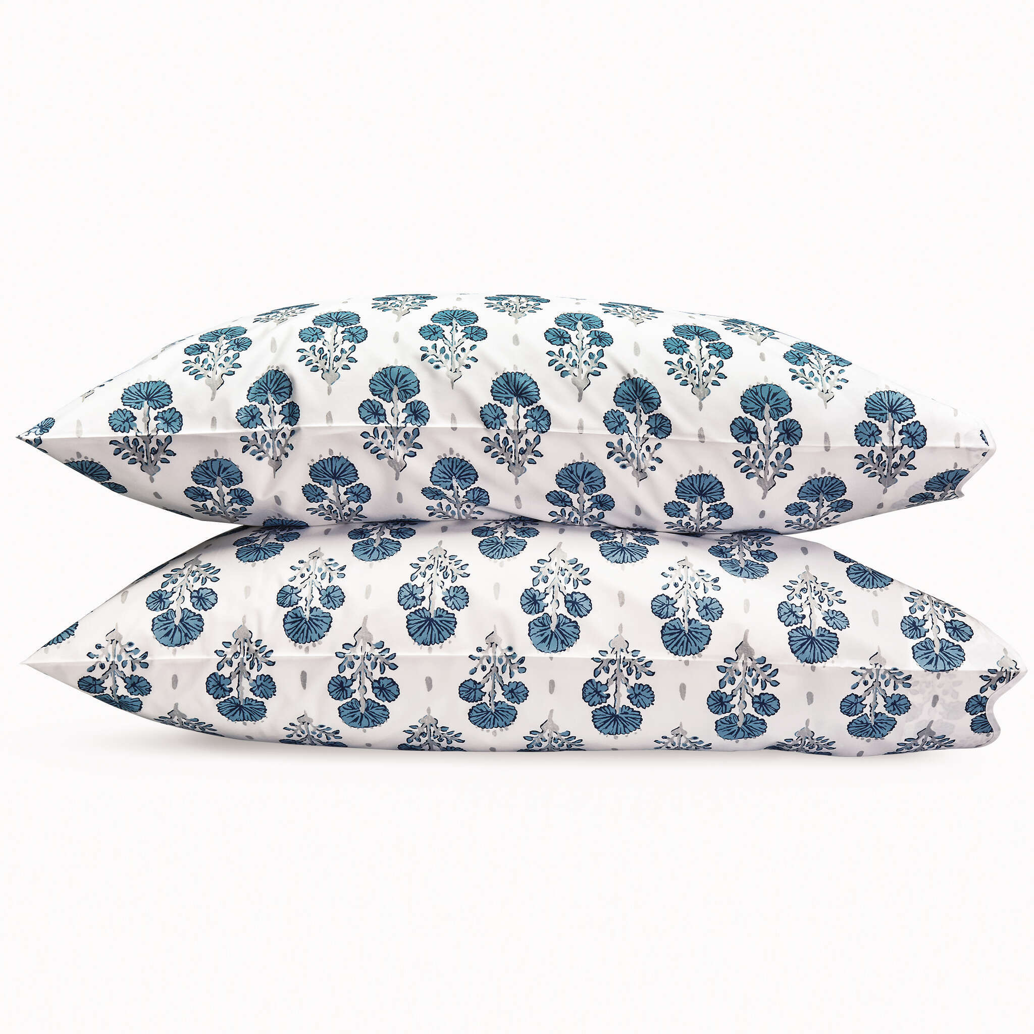 Lulu DK’s oversized floral stem print on our 500 thread count Luca Egyptian cotton percale has a painterly feel and a playful energy. Finished with a touch of metallic color and our signature scallop taping, Joplin is a classic in the making. Whether coordinated with Butterfield or styled on its own, it’s a gorgeous escape for your bed.