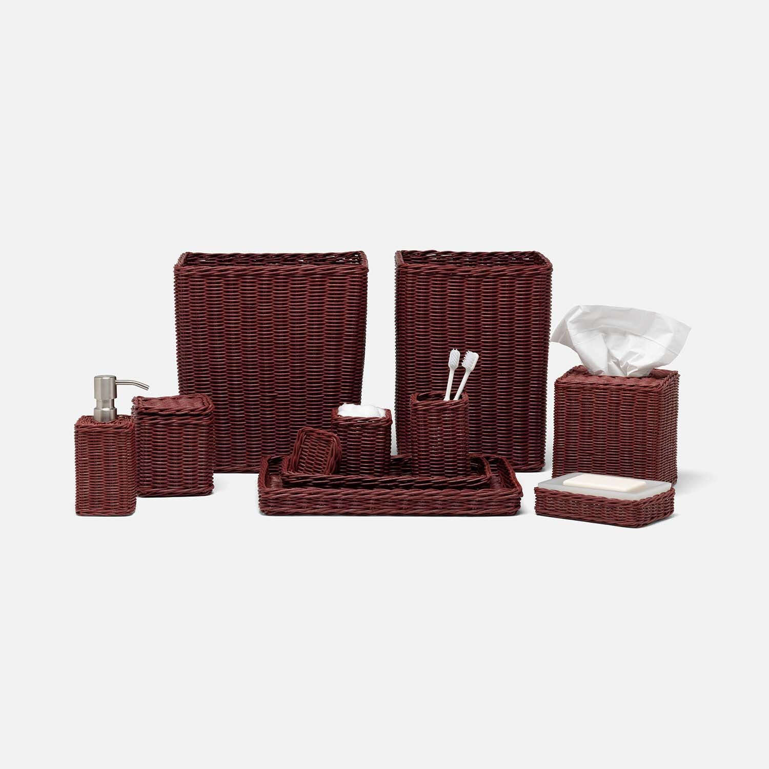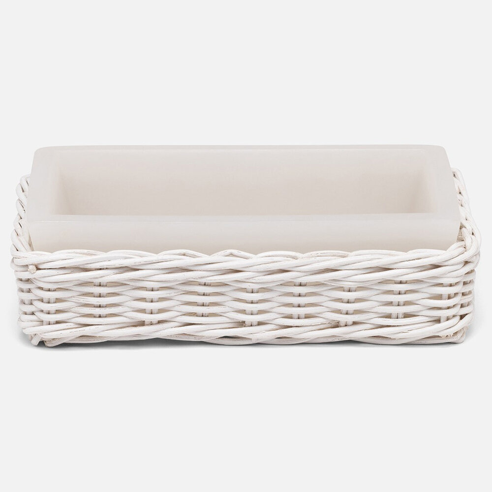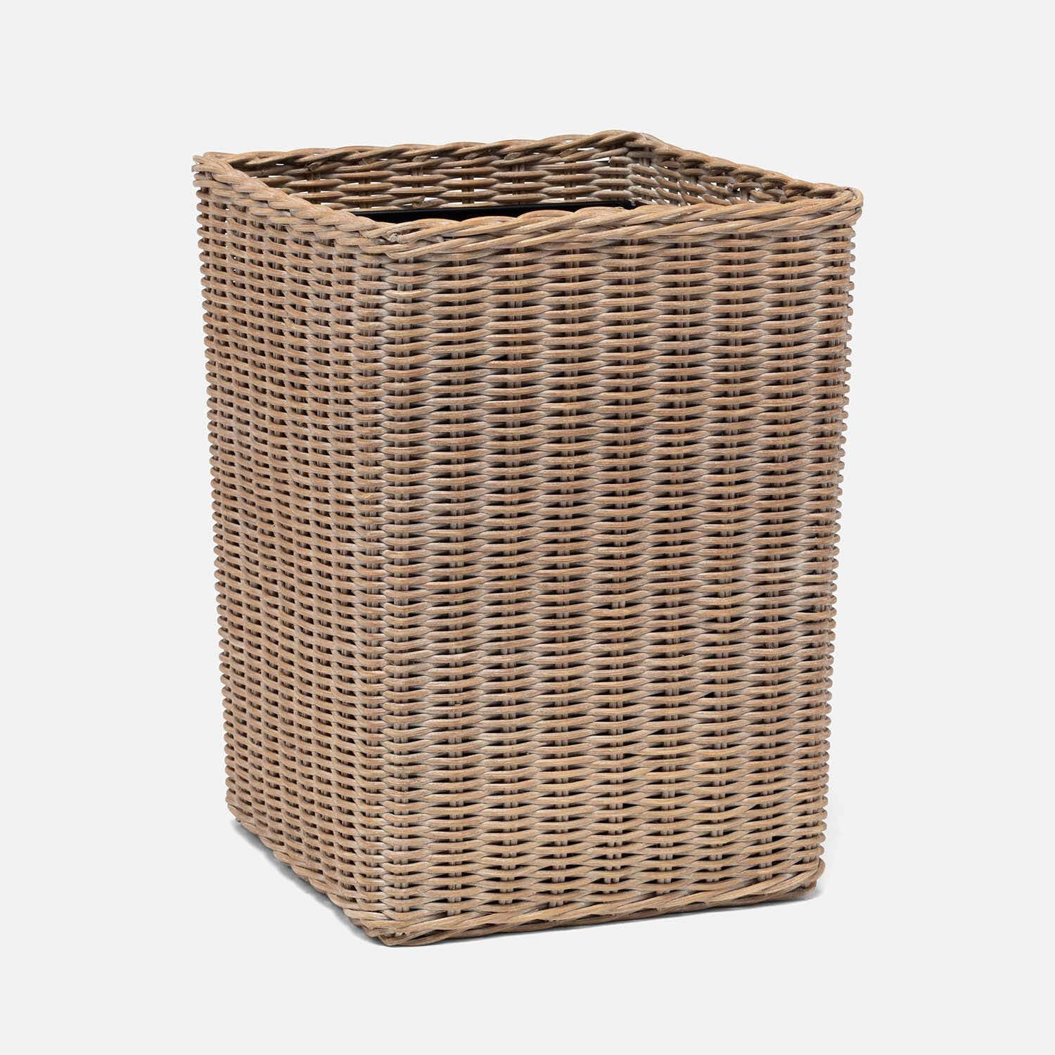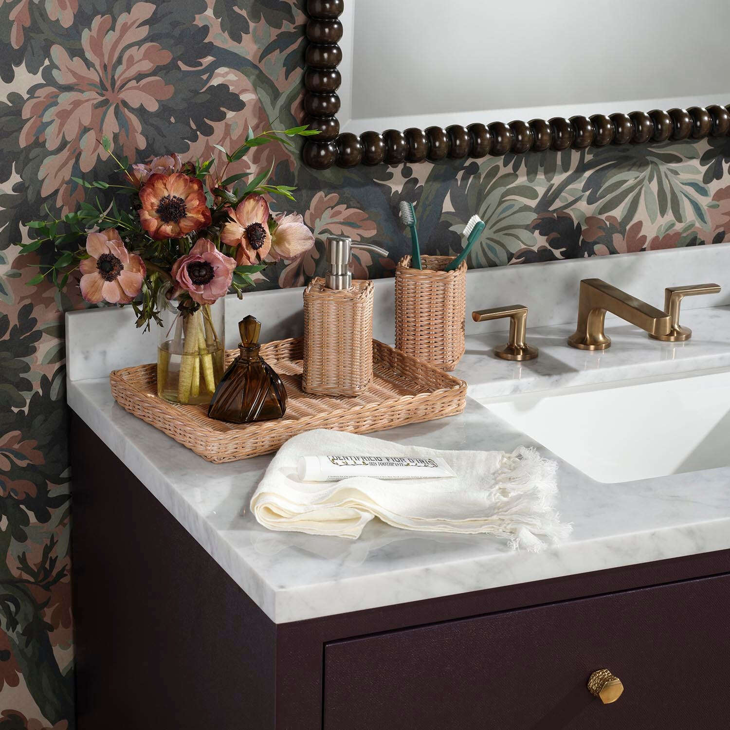 The organic woven rattan of the Kardia introduces a chic and polished style to the bath.