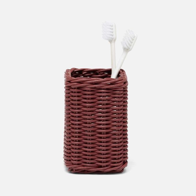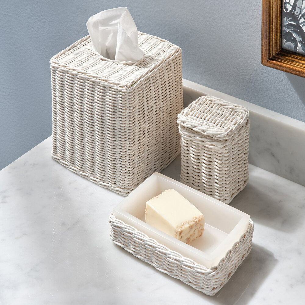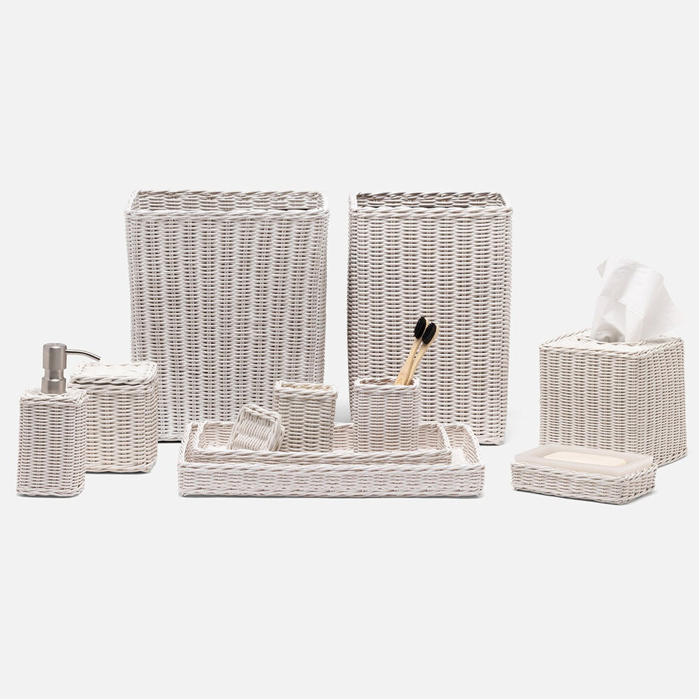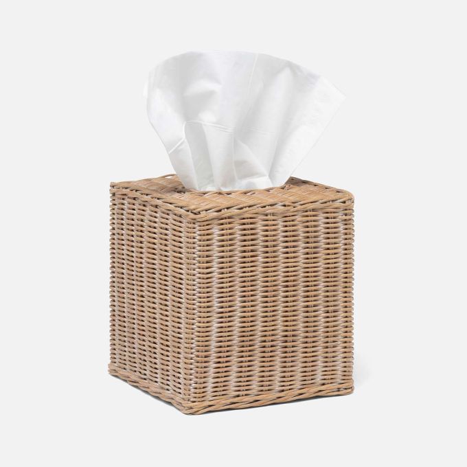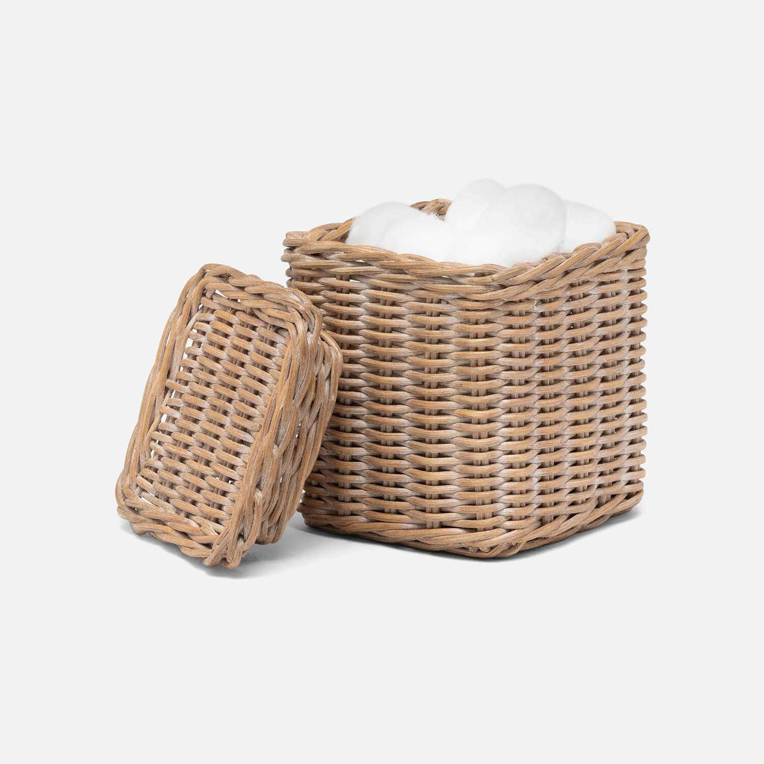 The organic woven rattan of the Kardia introduces a chic and polished style to the bath.