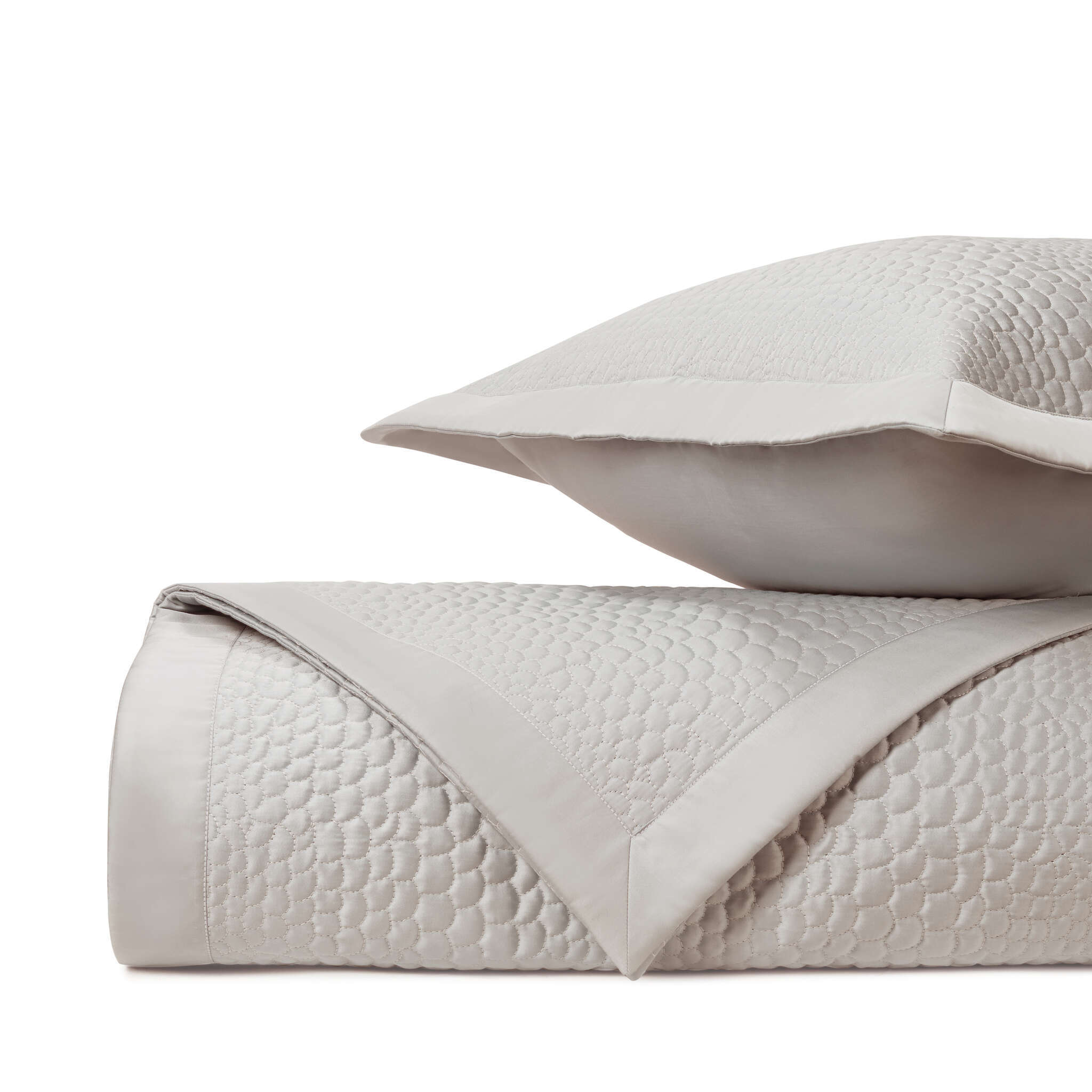 Coverlet: Our classic royal sateen quilted coverlets, in Komodo pattern, are finished with a solid 2" border.