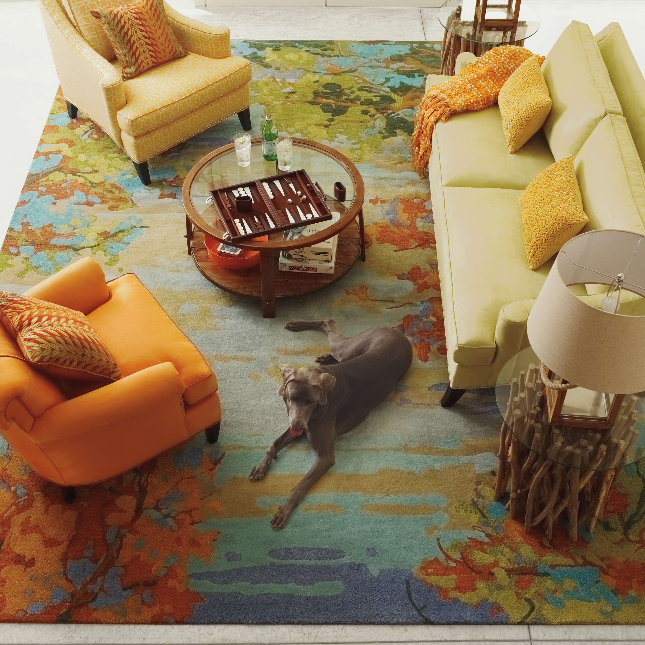 Art for the floor, our hand-made Landscape rug was inspired by an oil painting by artist Jennifer Hansen. Hand-tufted, our pure wool Landscape rug features gradations of color in the sky and trees to form a beautiful backdrop of soothing color for any room.