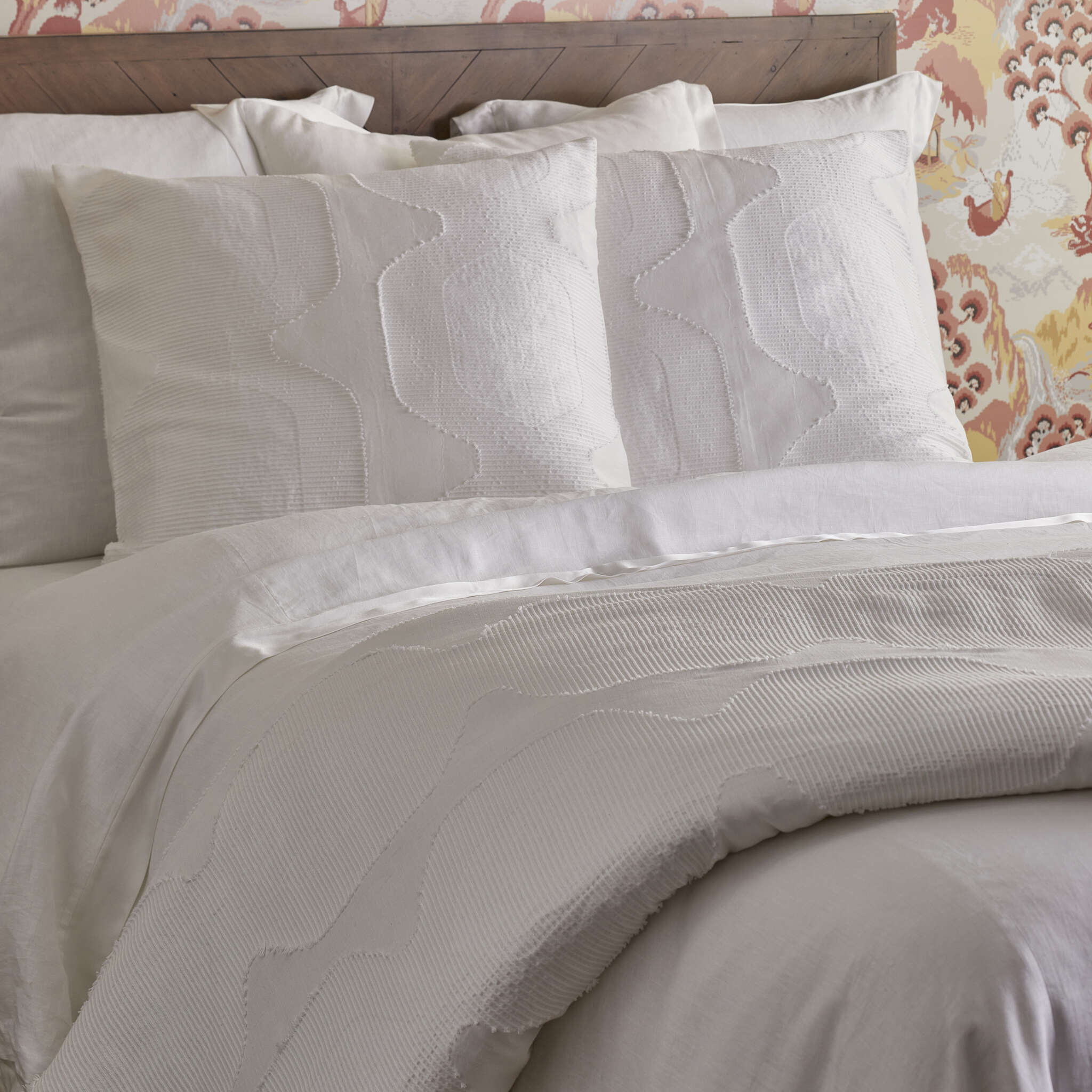 Shams: Pillow cover (insert not included). Knife edge. Reverses to ground linen. Zipper.