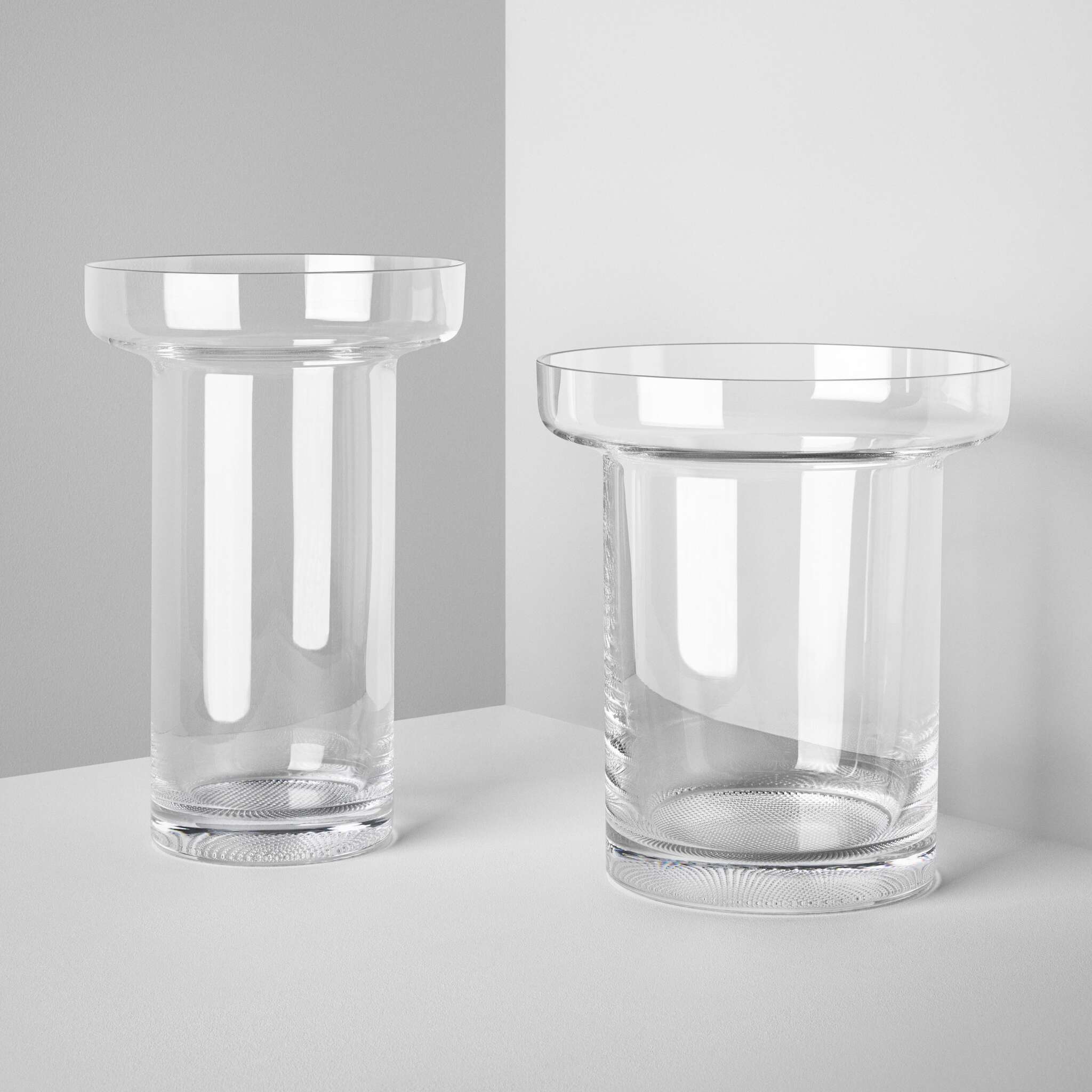 The low Limelight vase has a collar that perfectly frames and highlights any bouquet, and the shape of the vase makes it ideal for top-heavy flowers. Like all the items in the Limelight collection from Kosta Boda, this vase has the distinctive, textured base that optically reflects light, and it's even handmade. Design by Göran Wärff.