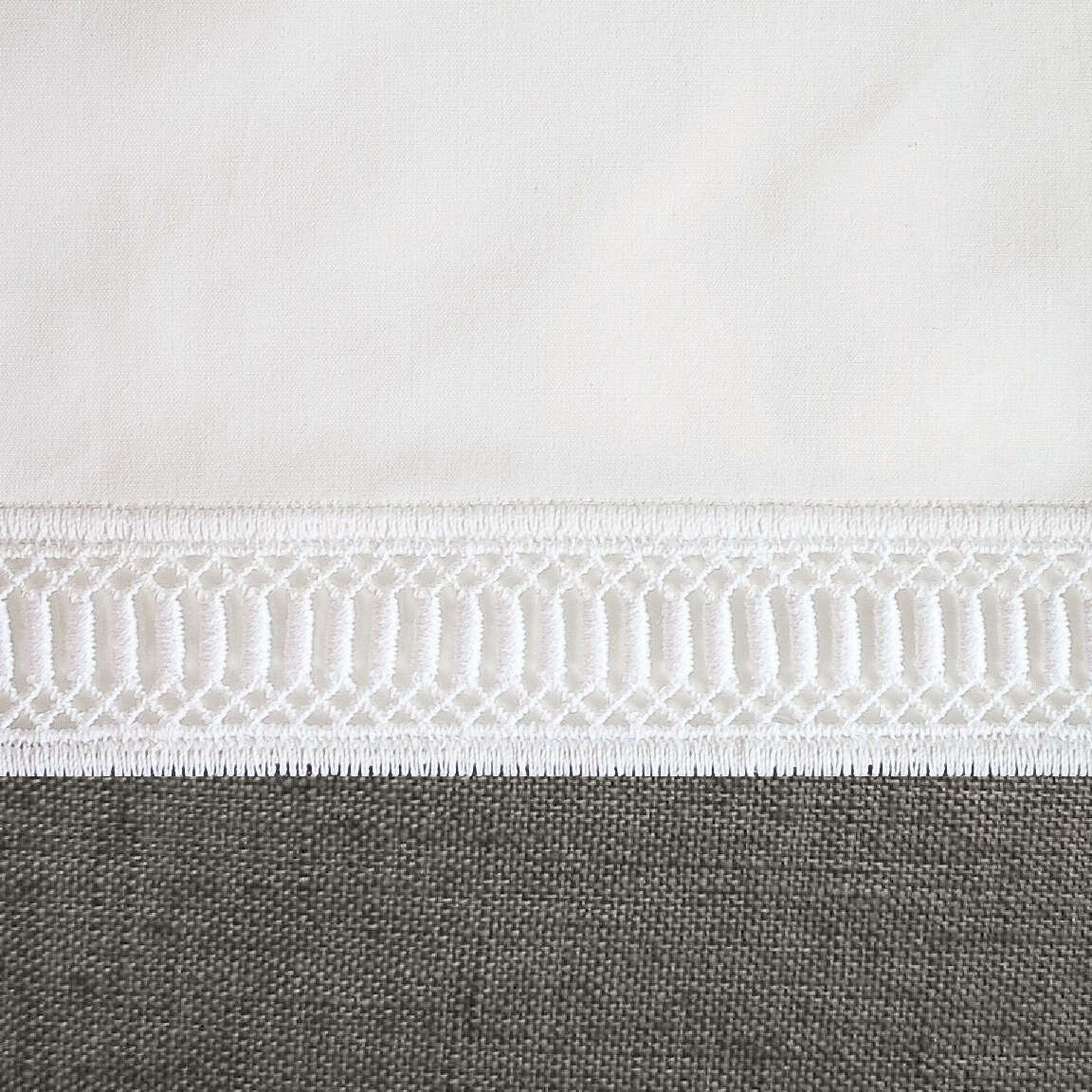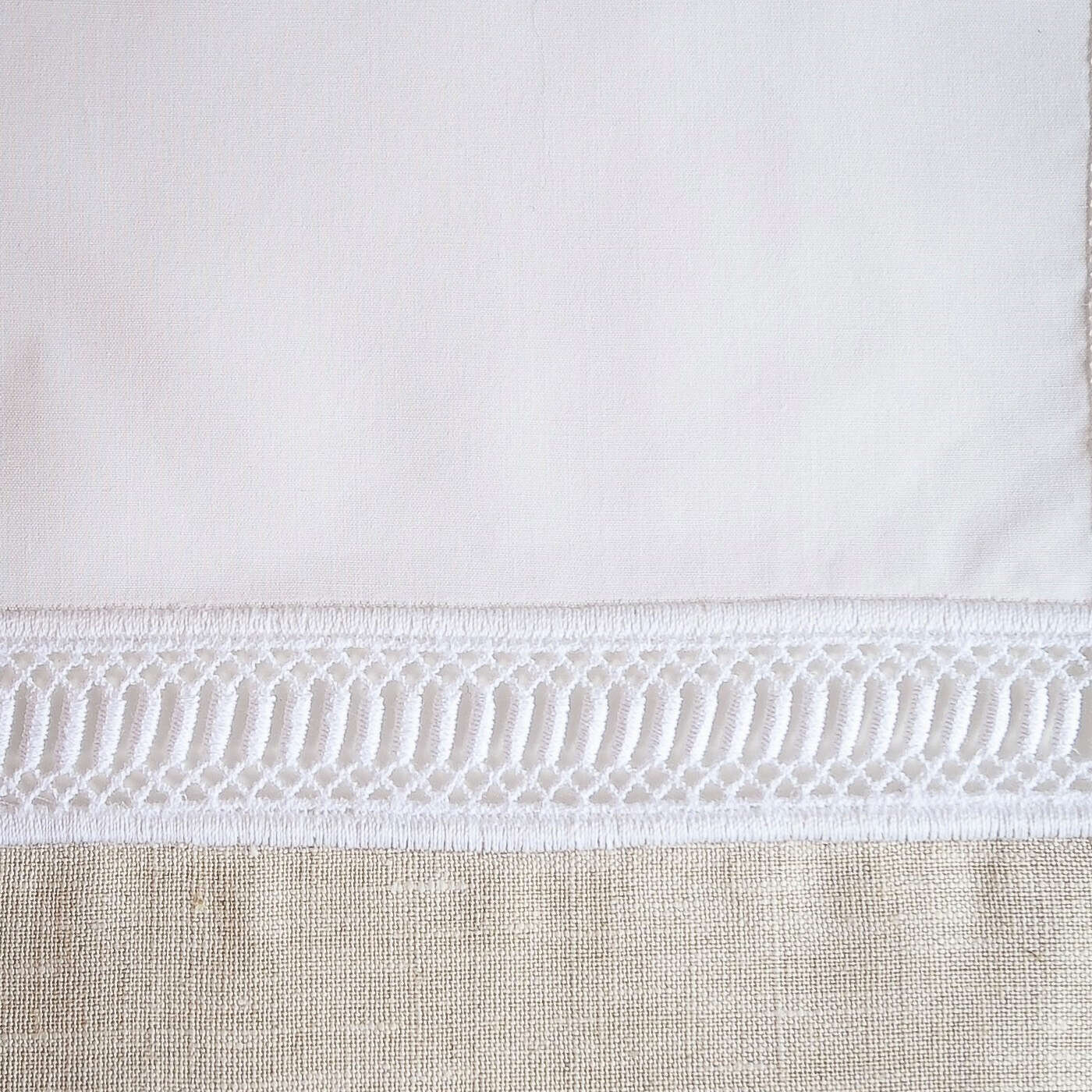 Linea Flat Sheets are designed with a white percale body, with a 2.5" linen cuff along the Euro return and a Doric lace inset.