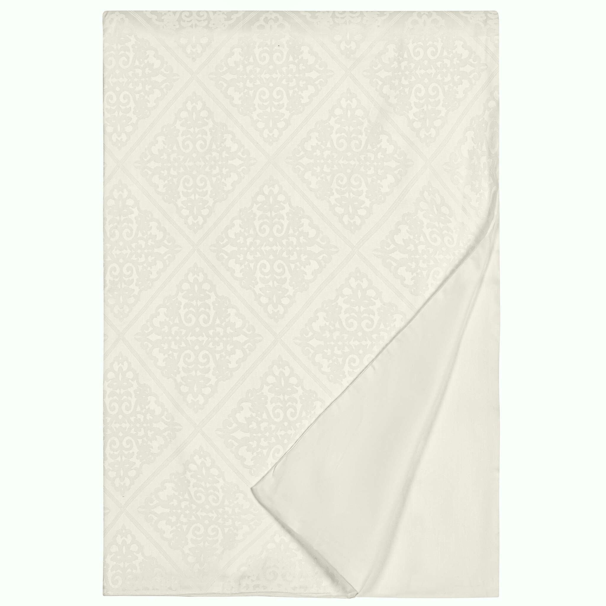 Luciana Duvet Covers are designed with the option of a Scroll or Diamond-patterned front, reversing to a solid sateen and finished with a knife edge, four corner ties and a button closure.