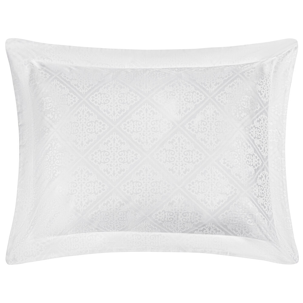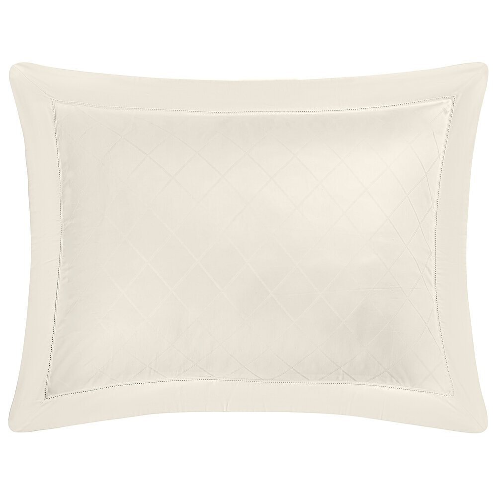 Luciana Shams are designed with the option of allover Scroll pattern with a plain hem or a Diamond-patterned body with a solid sateen flange and a tone-on-tone, hand-guided hemstitch.