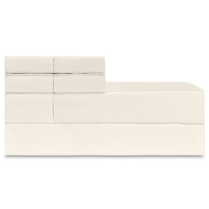 Luciana Flat Sheets are designed with a Diamond-patterned body, a solid sateen cuff and a tone-on-tone, hand-guided hemstitch.