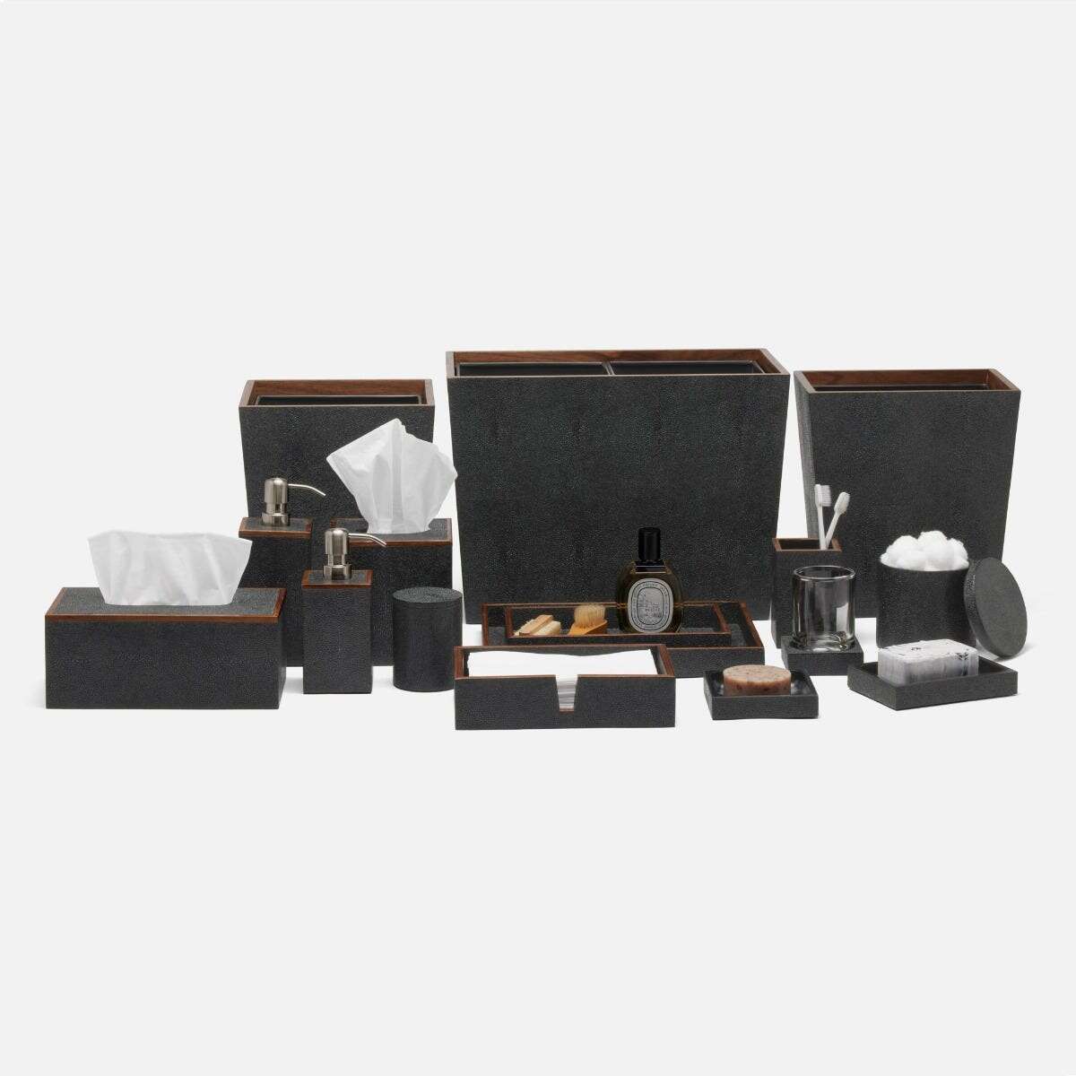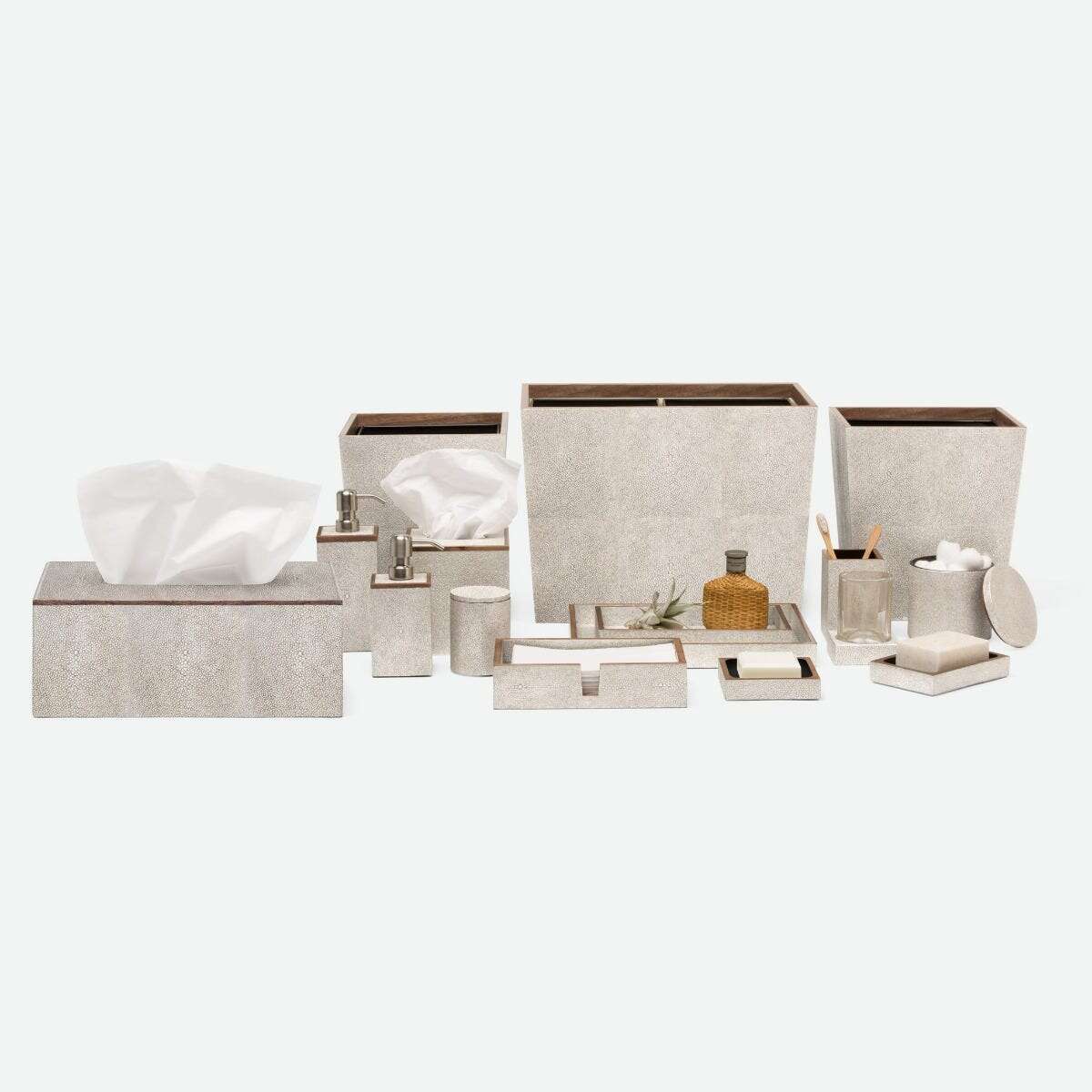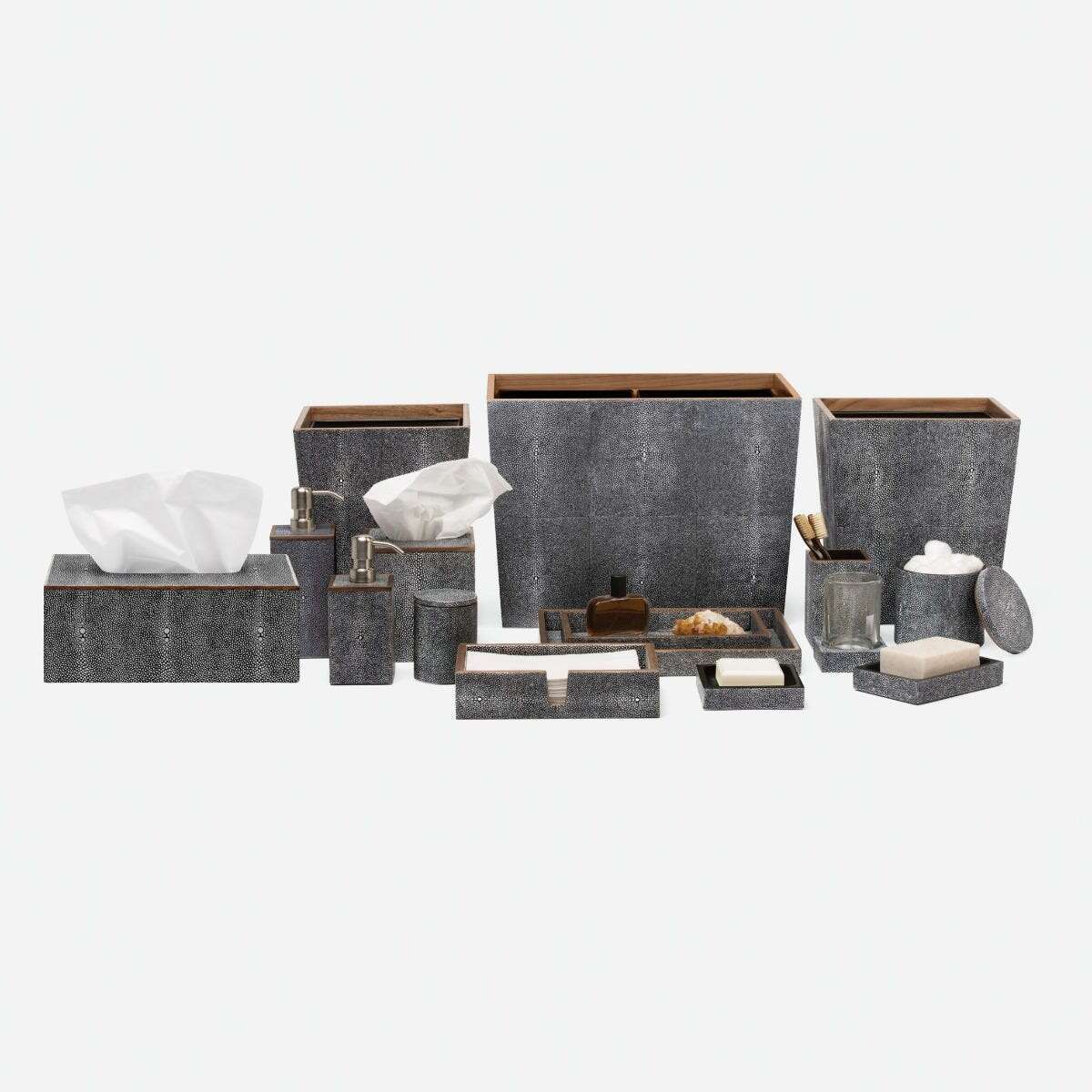 Every piece in the Manchester collection highlights the charm of faux shagreen with its simple, yet stunning, silhouette. Finished with a veneer trim, it's a timeless addition to any bath, guaranteed to elevate the entire atmosphere.