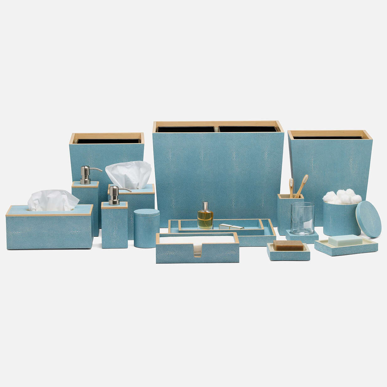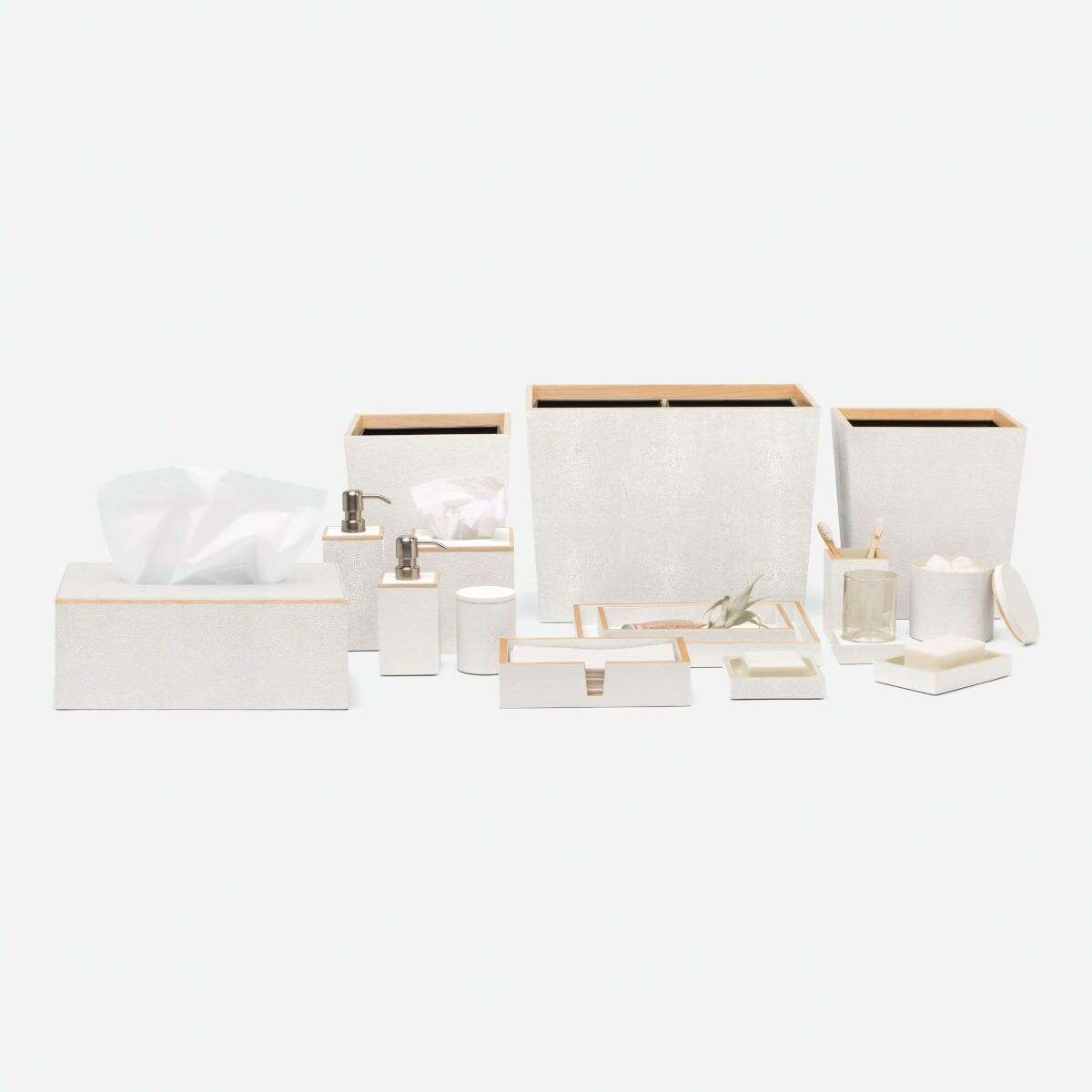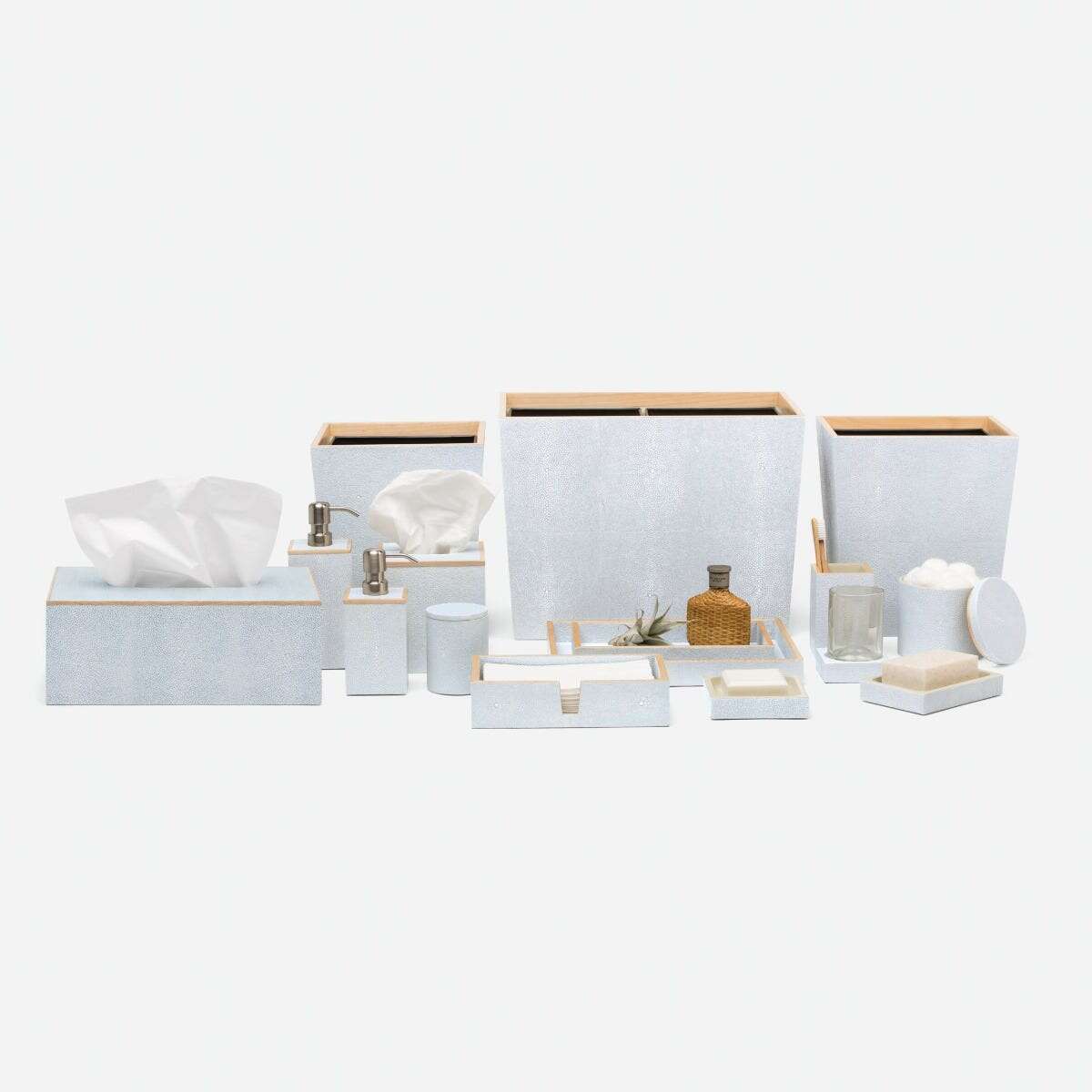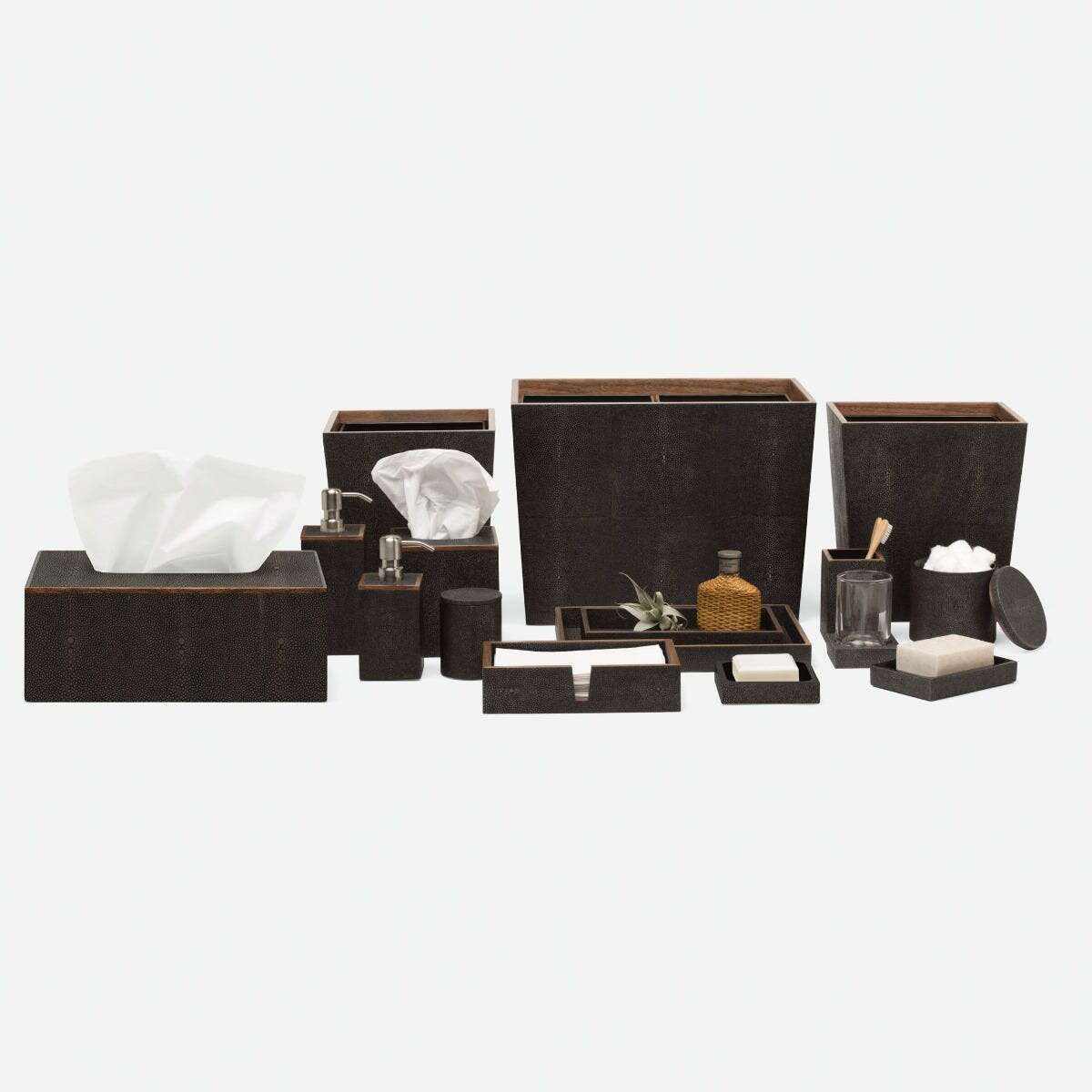 Every piece in the Manchester collection highlights the charm of faux shagreen with its simple, yet stunning, silhouette. Finished with a veneer trim, it's a timeless addition to any bath, guaranteed to elevate the entire atmosphere.