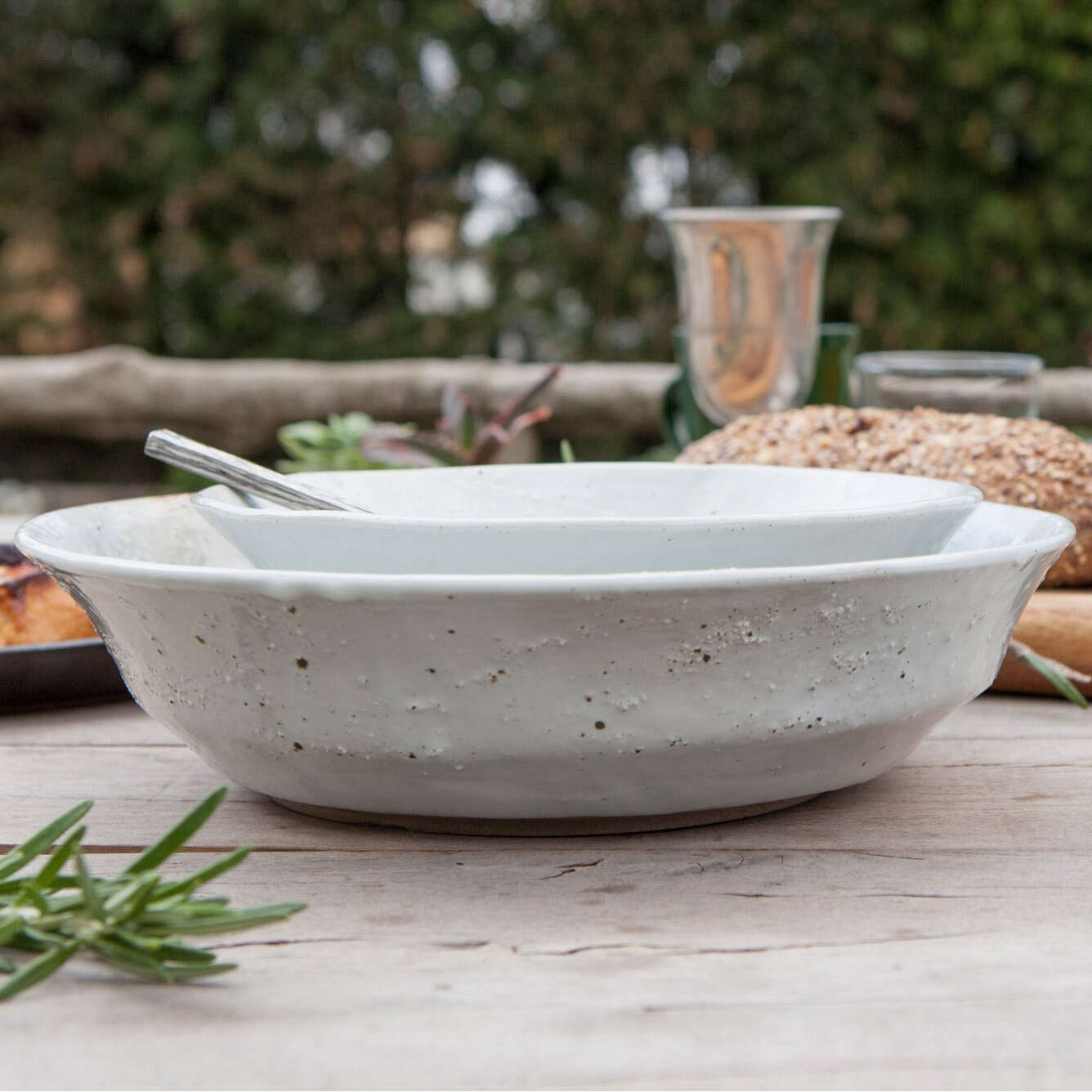 The earthy sophisticated energy of the Marcus collection adds a grounded unique style to the table. Now available in Dark Green Salt Glaze.