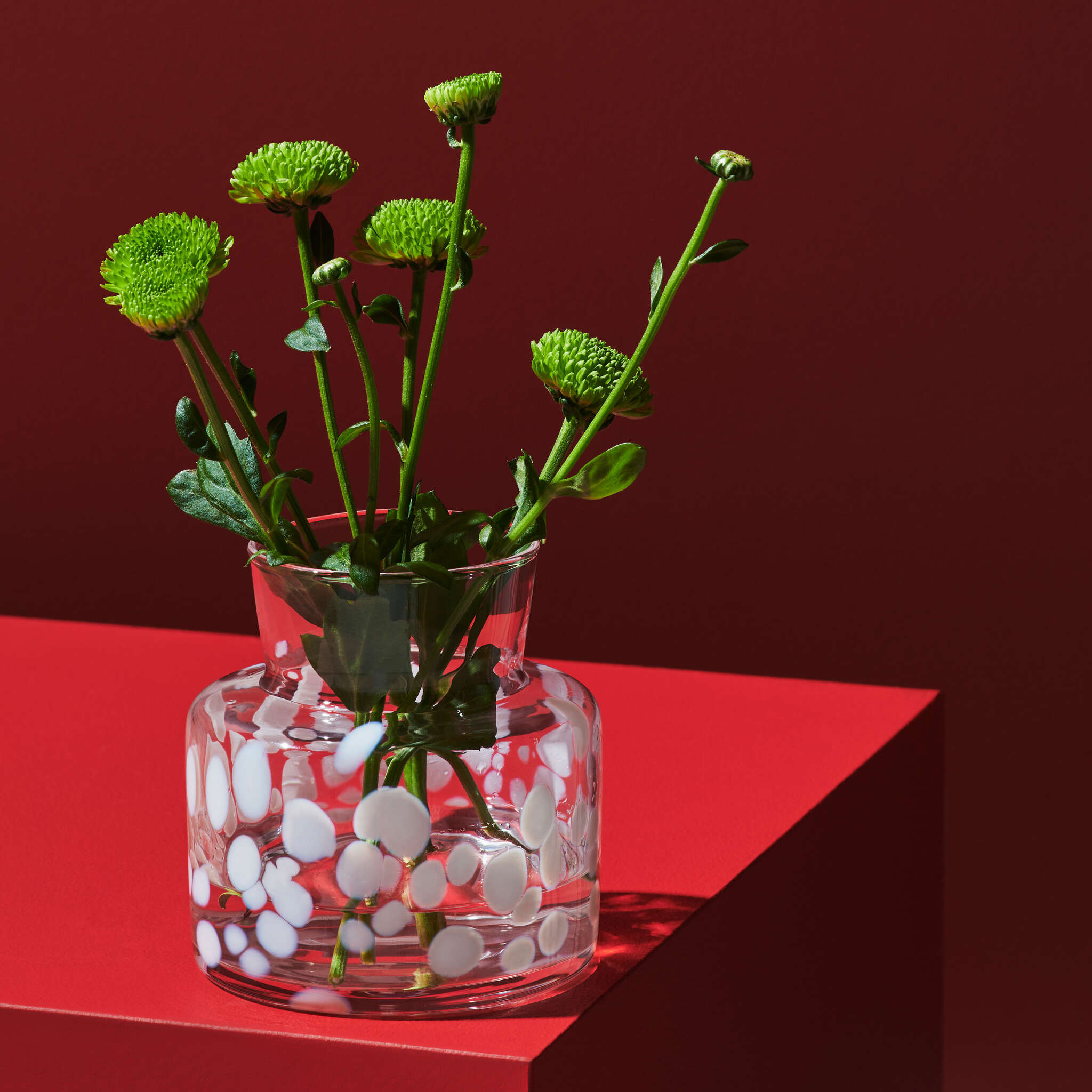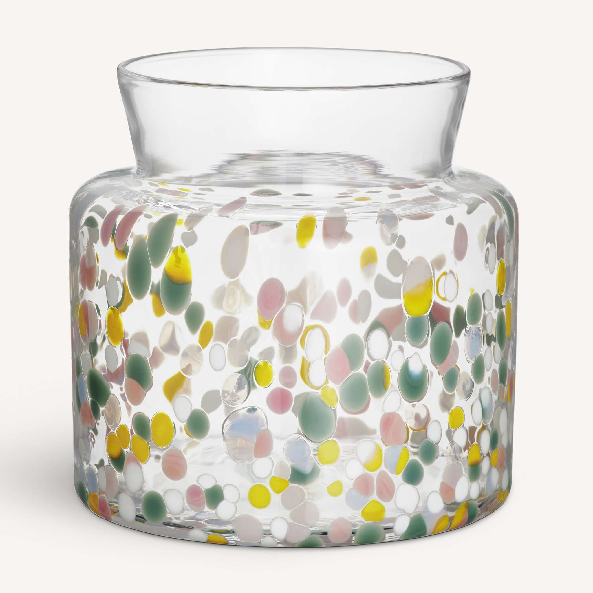 Meadow Spring is as colorful and lively as a flower meadow that comes to life during the first sunny days of spring. During the production the vases are rolled in crushed pieces of colored glass, which makes each vase unique. The small vase from Kosta Boda is made to embrace a small bouquet, or on its own shine just as bright as the sun on a brilliant spring day. Design by Sara Persson.
