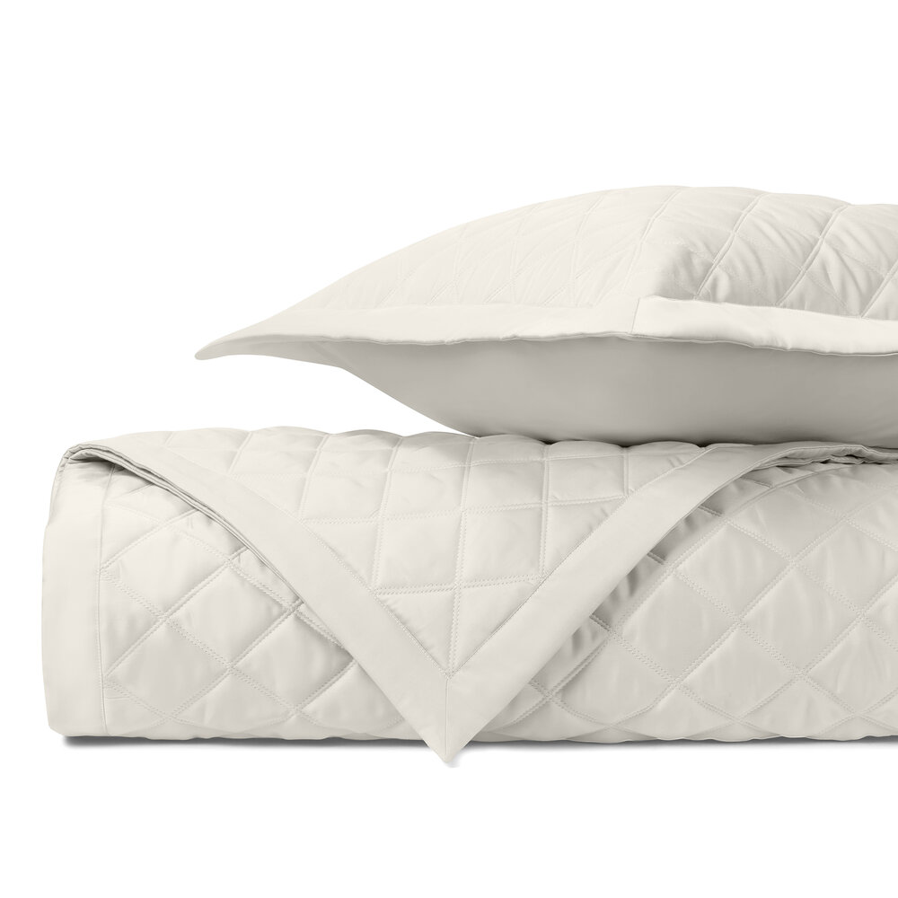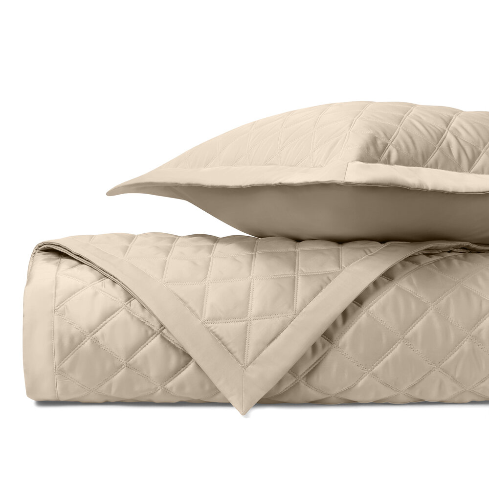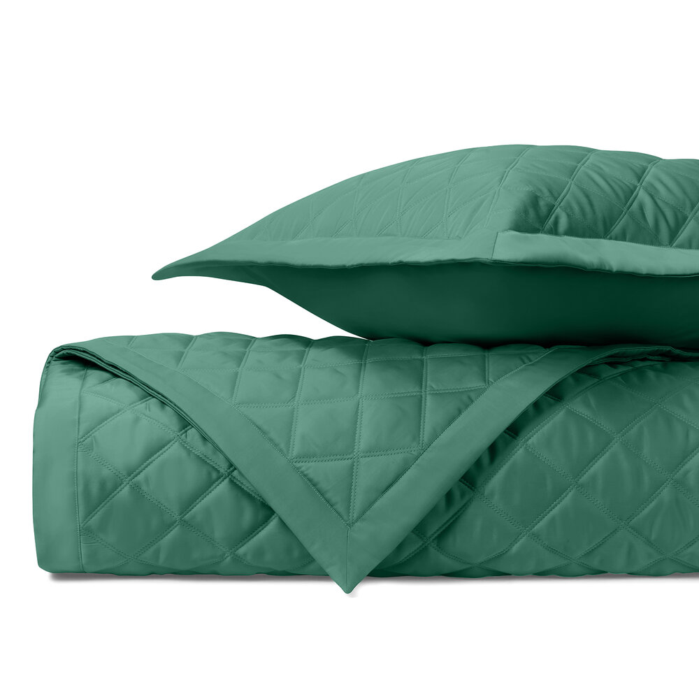 A horizontal diamond, quilted our Royal Sateen, serves as a fresh, timeless addition to the top of any bed.