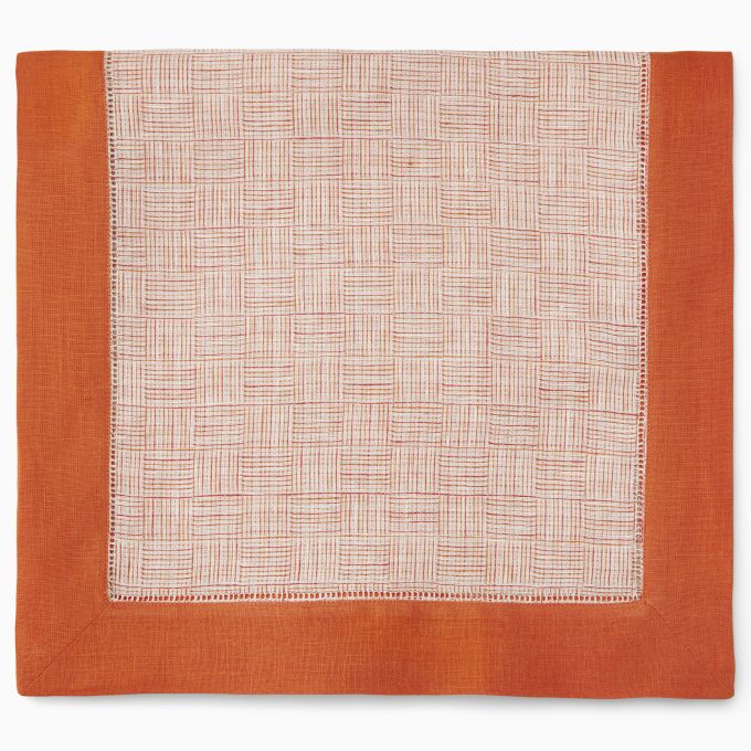 The joyous spirit of sunlit picnics enjoyed amongst the bounty of blooming florals inspire the classic beauty of our Mikelina table collection. Crafted from 100% linen, the collection brings together bright threads of fern, navy, and tangerine in a yarn-dyed jacquard weave to create a pattern of small plaid squares framed by a contrast border and hemstitch finish. Mikelina is designed to complement our Mikela collection for a perfectly coordinated look.