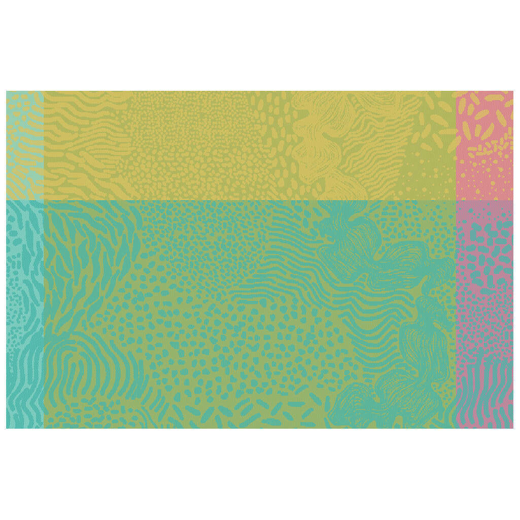The Mille Vagues Cotton Table Linen by Garnier Thiebaut features a stunning design with flowing waves of spots and lines in shades of yellow, orange, blue, and pink. Hand-drawn by our in-house French artisans and jacquard-woven with extra-long staple cotton, it brings elegance and durability to your table.