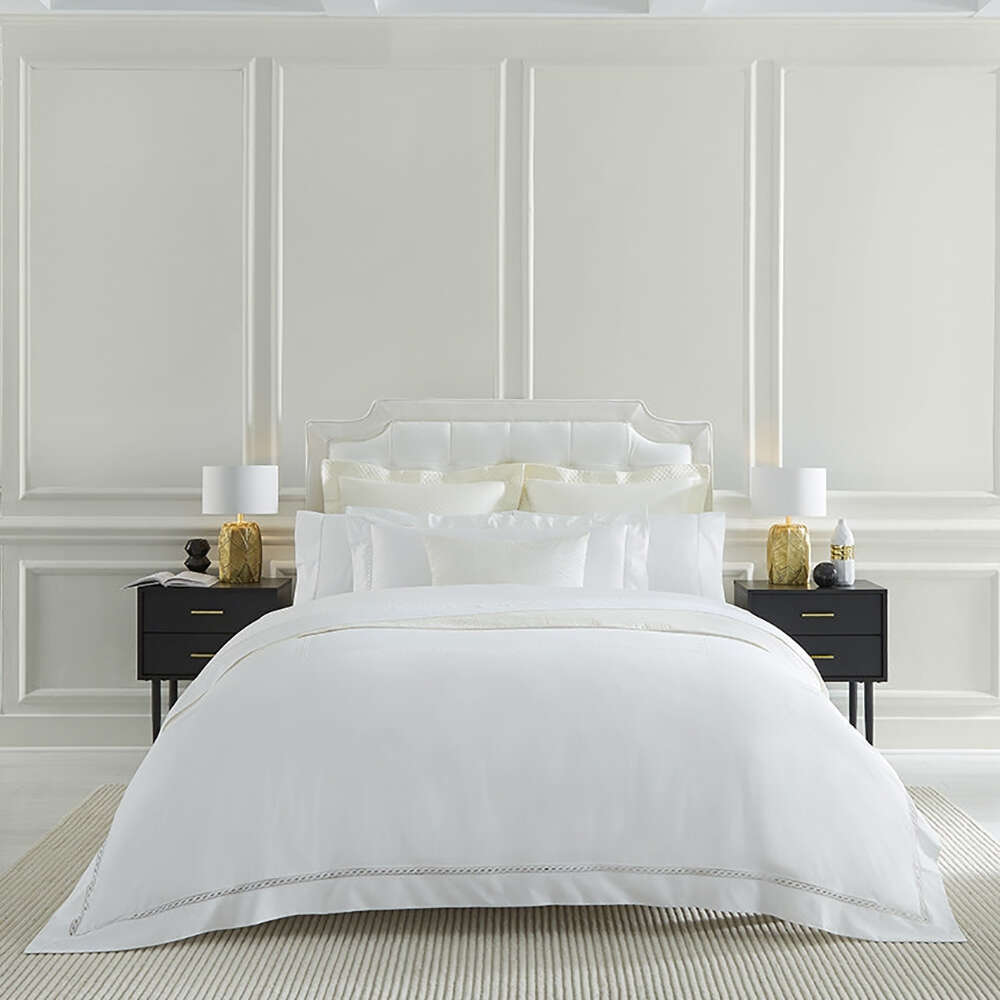 Millesimo shines as one of our customer’s most favored extravagances: it’s densely woven to a rich, polished sateen that’s at once supple, luminous, and soft. An Italian lace inset border with a classic chain motif provides just the right touch of detail for unsurpassed Ne Plus Ultra bedding.