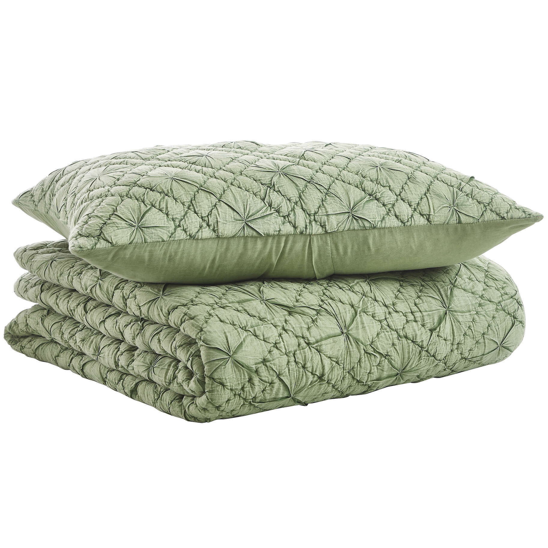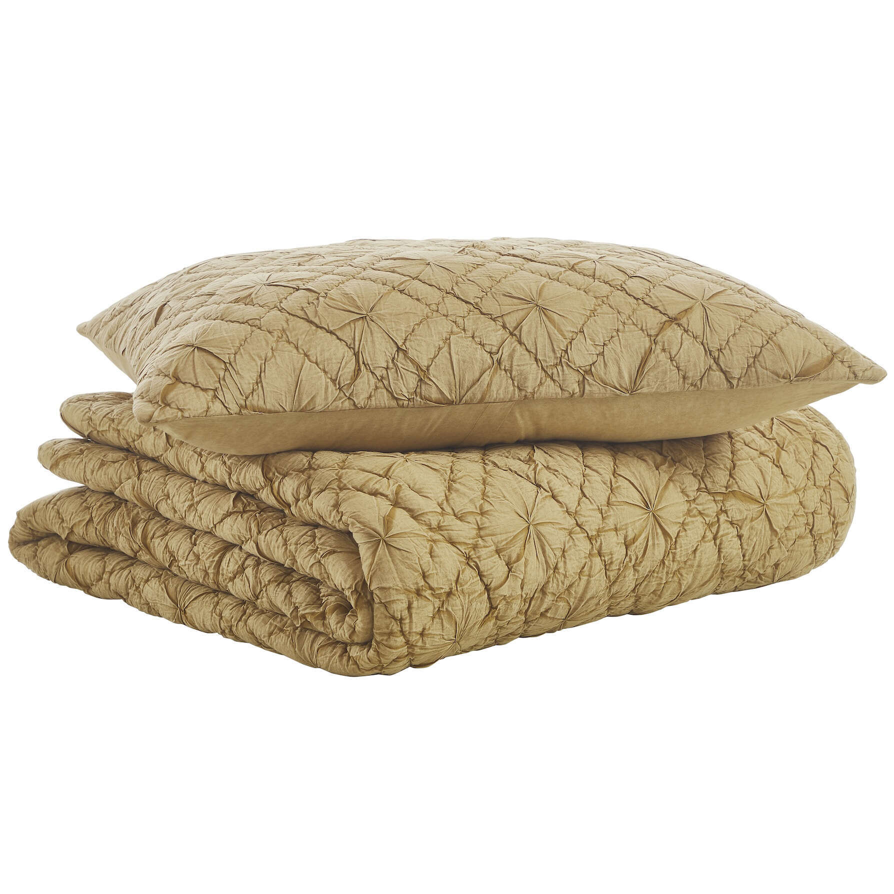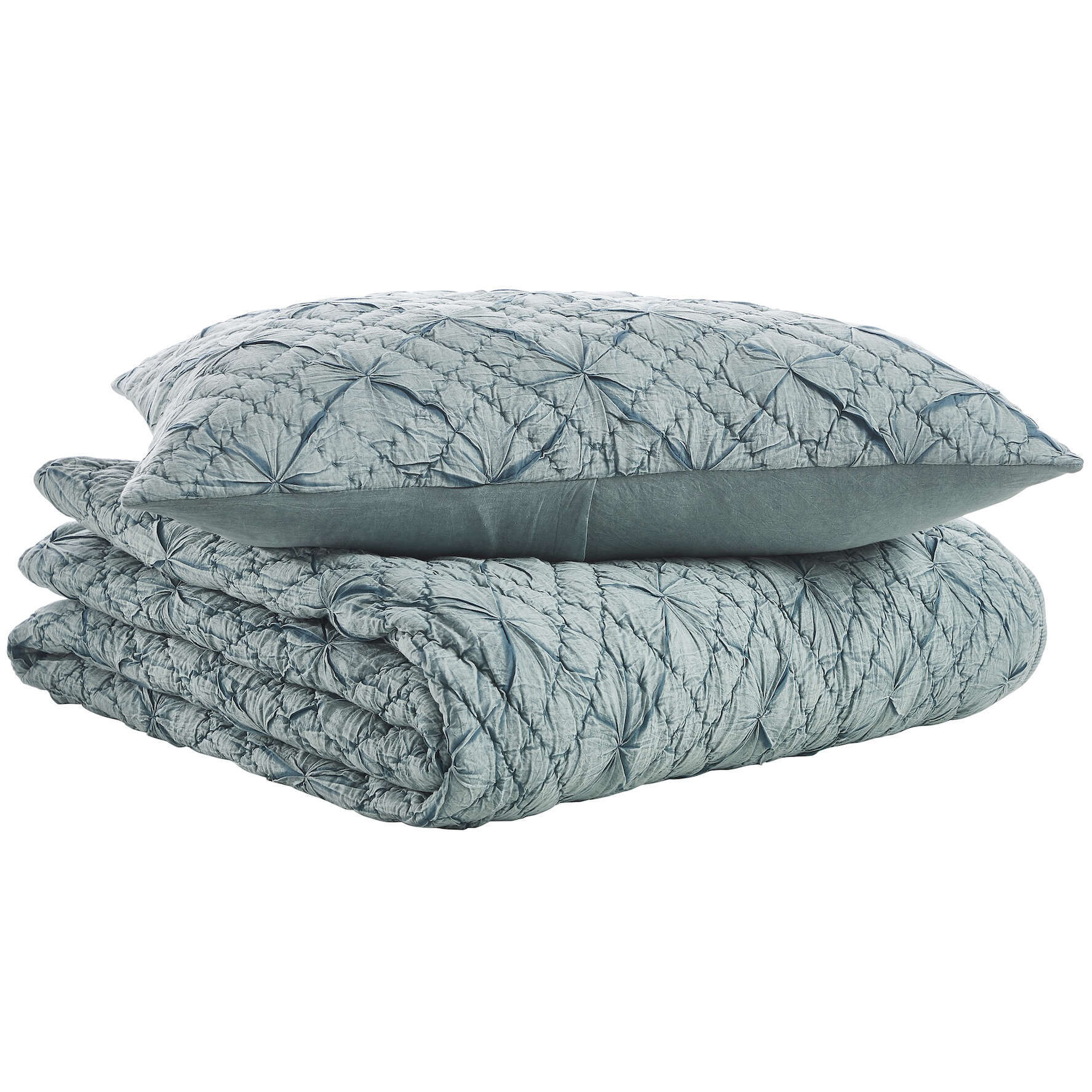 The Mirabelle Quilt and Shams are crafted from 100% cotton voile that has been stonewashed to achieve a timeless living hue and tone. The diamond design hand quilting adds a classic look and feel, along with overall texture, to your bedroom space, giving it an impressive appearance.