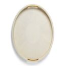 This stylish oval tray has a luxurious shagreen finish and integrated brass handles, which do not distract from the smooth beauty of its shape. Use it as an elegant home bar or for organizing objects on a bookshelf or table.