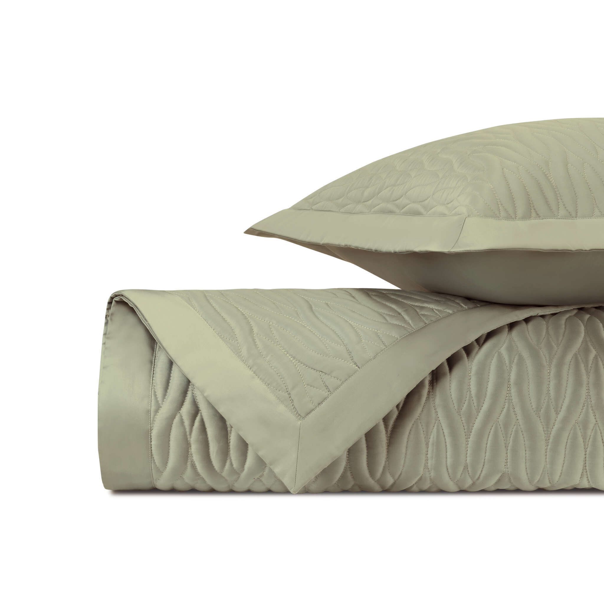 Coverlet: Our classic royal sateen quilted coverlets, in Napa pattern, are finished with a solid 2" border.