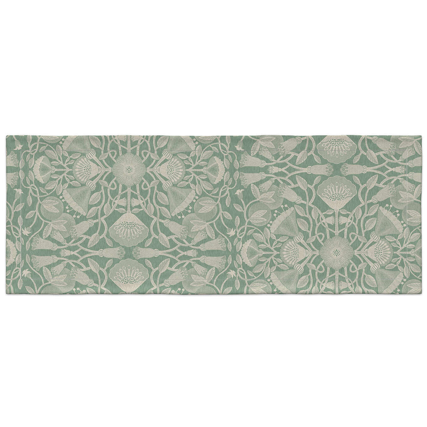 The Nouveau linen tablecloth lets floral tendrils and flower ornaments sprout and bloom in full splendor.