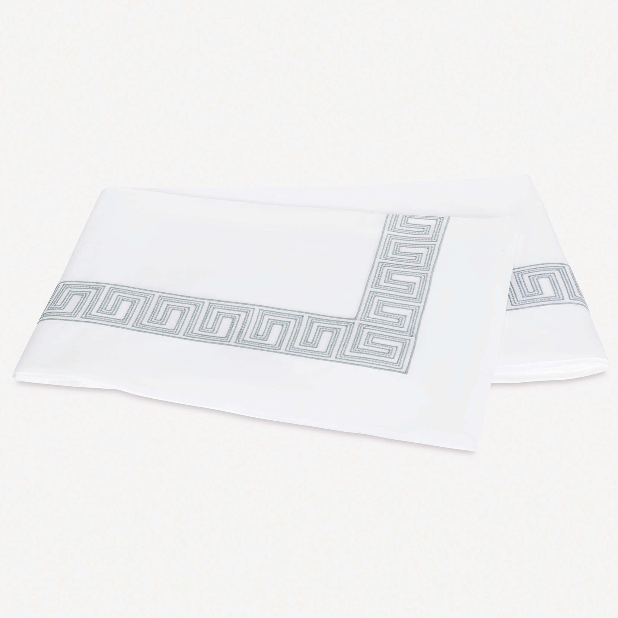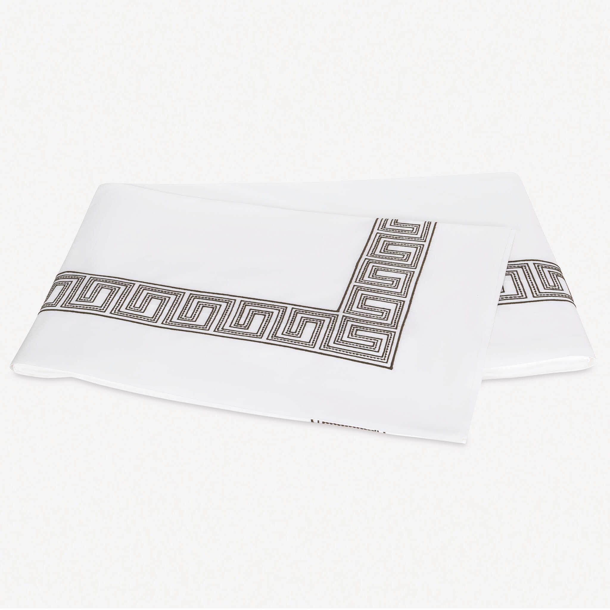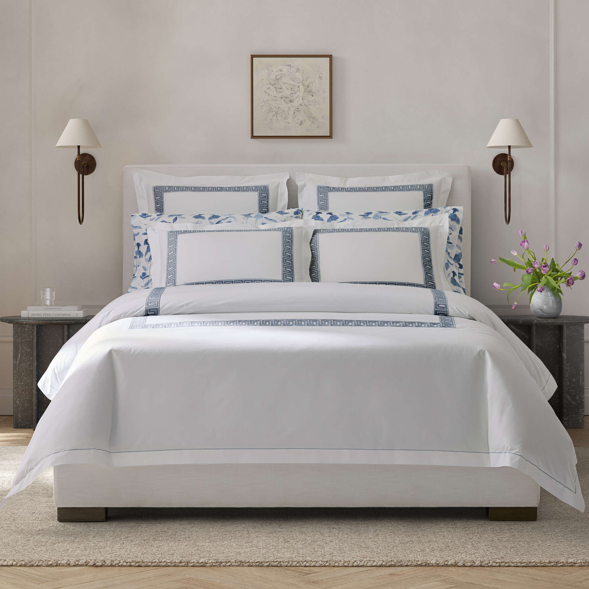 Inspired by an intricately beaded Schumacher tape, our boldly embroidered Ophelia collection embodies a traditional Greek key pattern with a bespoke sensibility. In 520 thread count Ceylon sheeting, it’s a playful, exuberant take on a traditional motif.