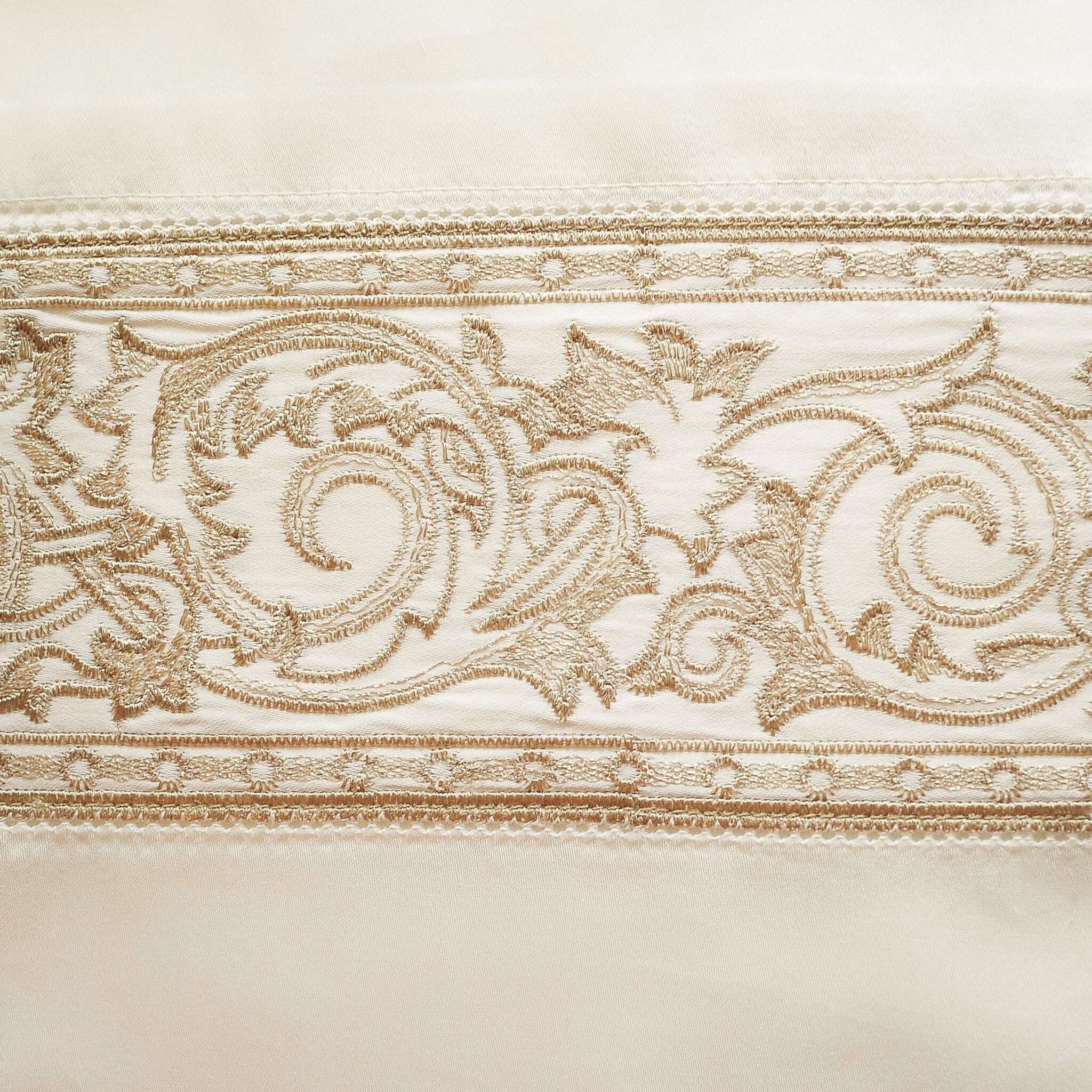 The stunning embroidery appliqué, finished with a tone-on-tone, hand-guided hemstitch, elevates our Royal Sateen with a European flair.