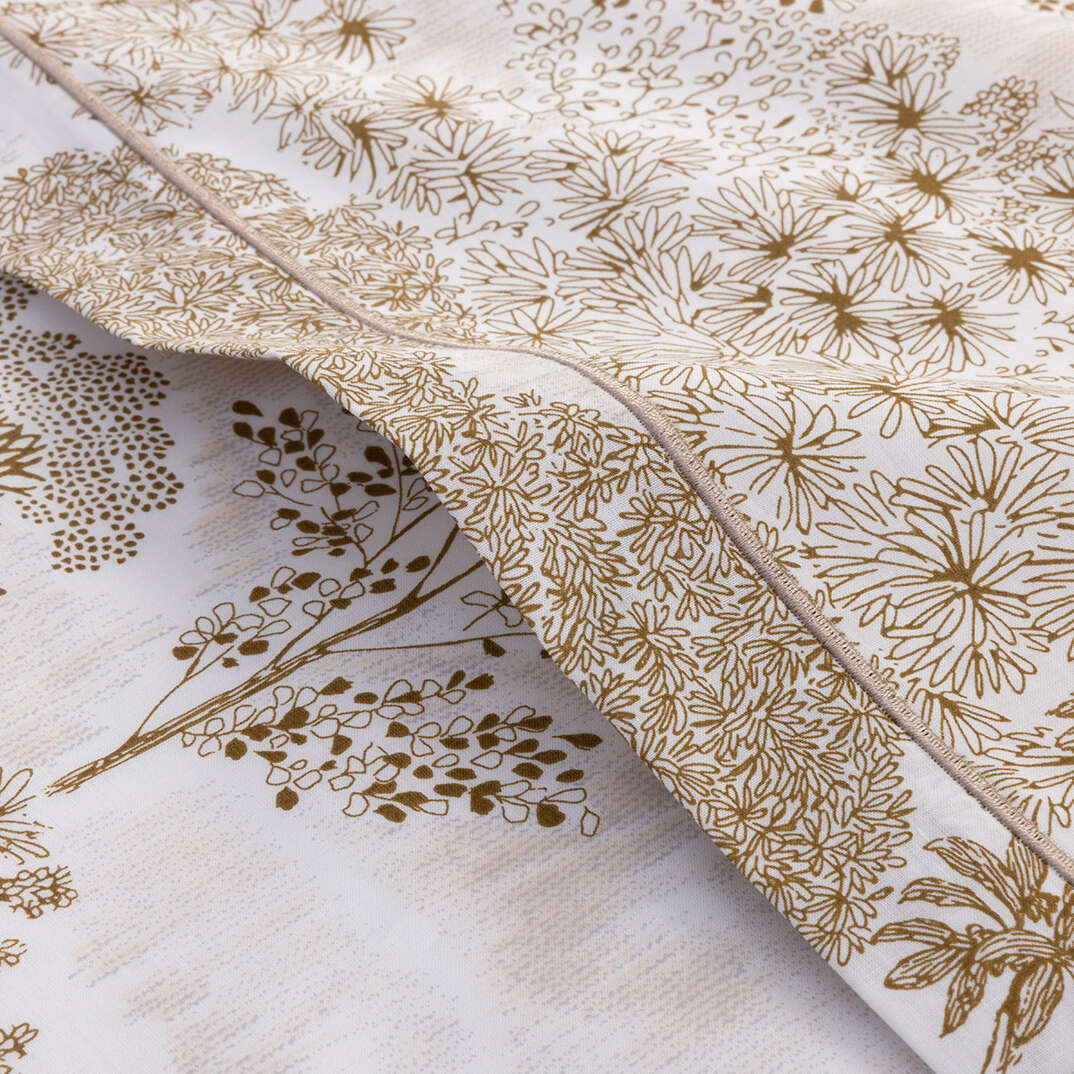 Printed on a batiste of organic long-staple combed cotton, this set combines the finesse of its 200 thread count weave with the airy, breathable softness of cotton—ideal for a light sensation.