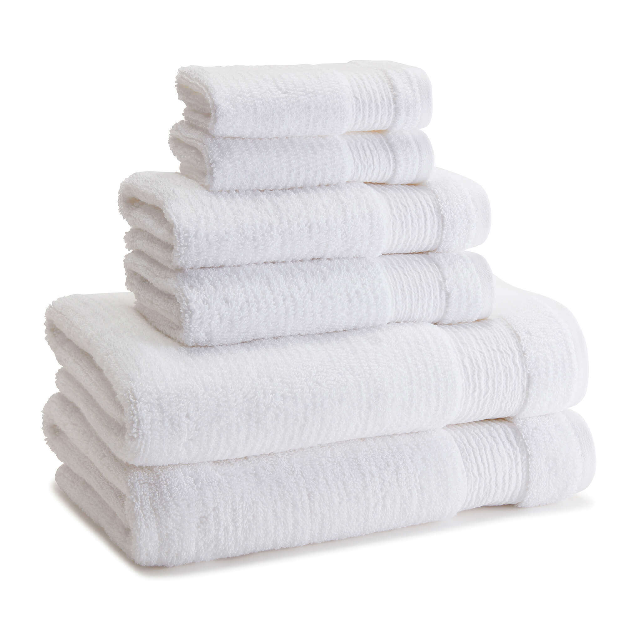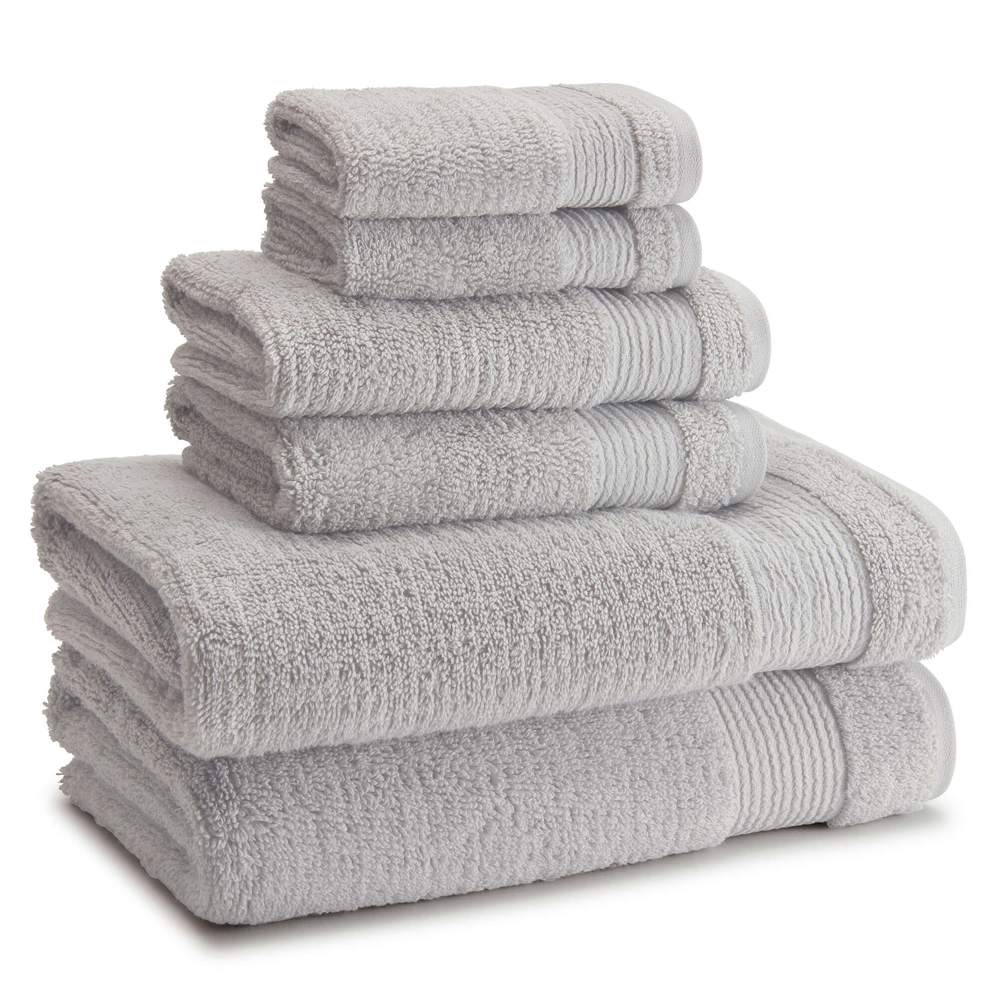 Bath towel features a sewn in hanger loop.