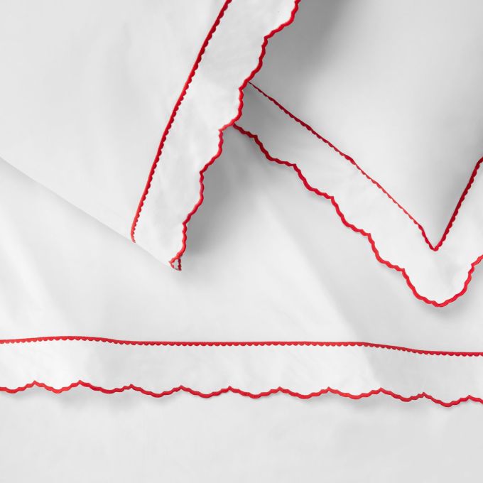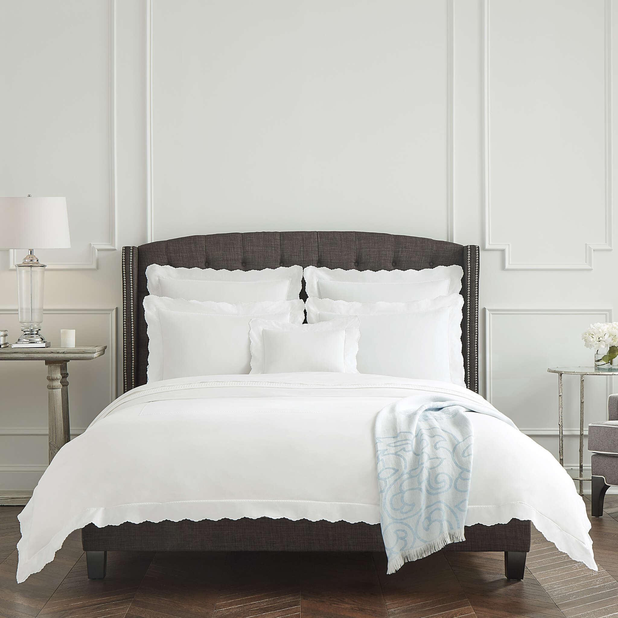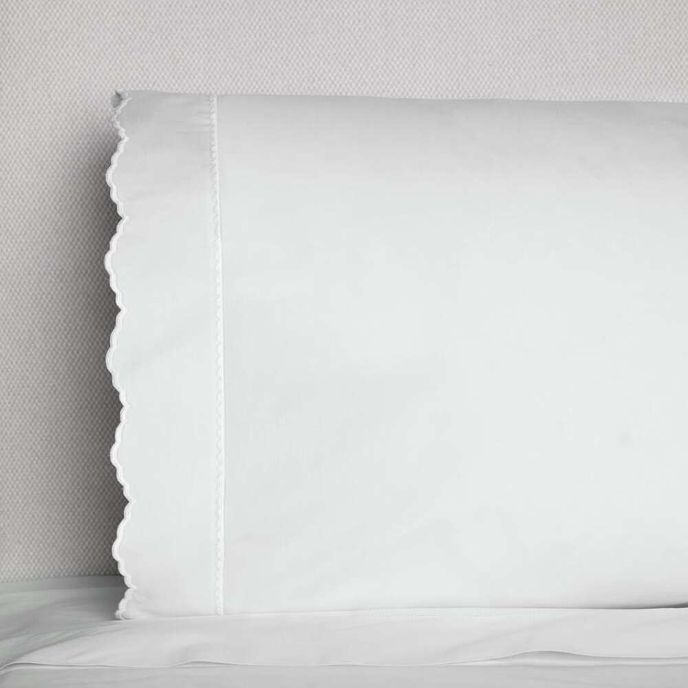 A fanciful update to the beloved Celeste, our best-selling percale for over 20 years, Pettine features embroidered scalloped edges and lined satin stitch border for a look of elevating ease and chic refinement. Beautiful Italian tailoring, supple drape, and remarkably smooth hand- feel define Pettine with the heritage craftsmanship