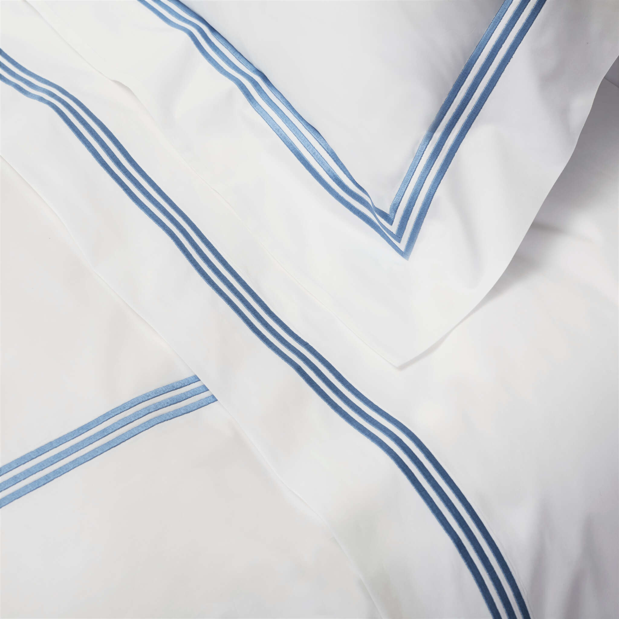 Duvet Cover: knife edge, buttons closure, inside sateen ties; finished with three embroidery lines in a “U" shape.