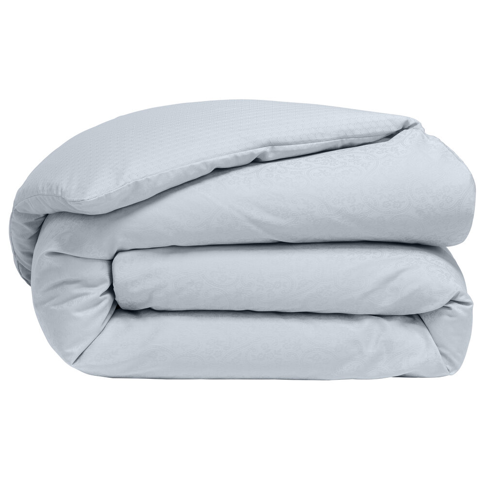 Italian chic, luxury codes and the authenticity of jacquard weaving. Exalted by sumptuous sleeping palaces, this model offers a timeless journey through refined and delicate motifs. A floral arabesque coordinates with the geometric reversible and its complex weaves. A day-punch finish, available only on the pillowcases in this collection, enhances the sand and white palette of this set.