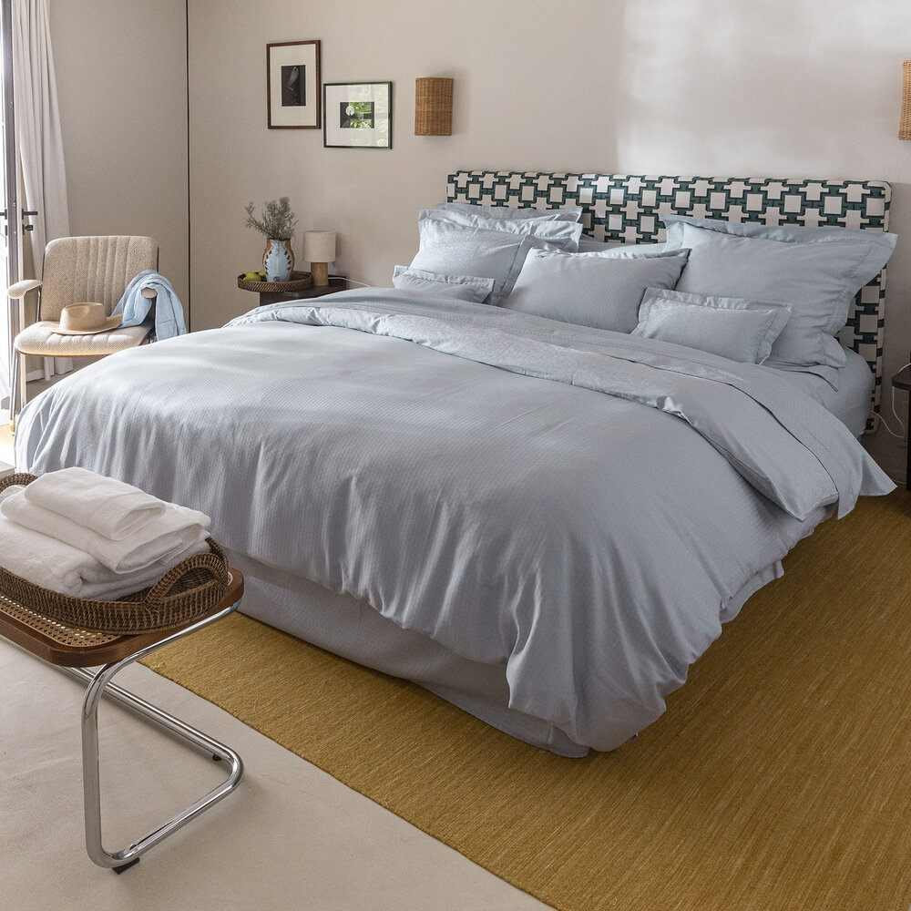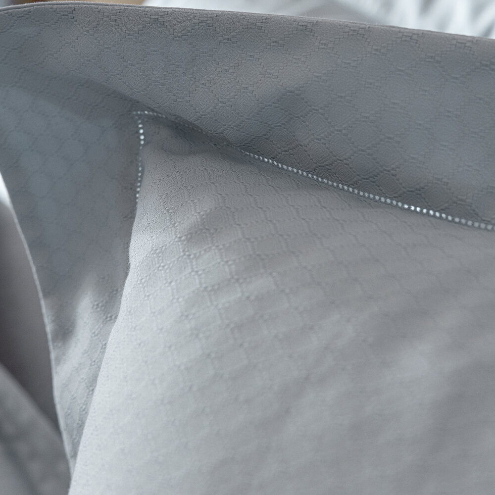 2 Pillowcases: Jacquard Geo pattern (front/back), 10 cm hem, day-punched.