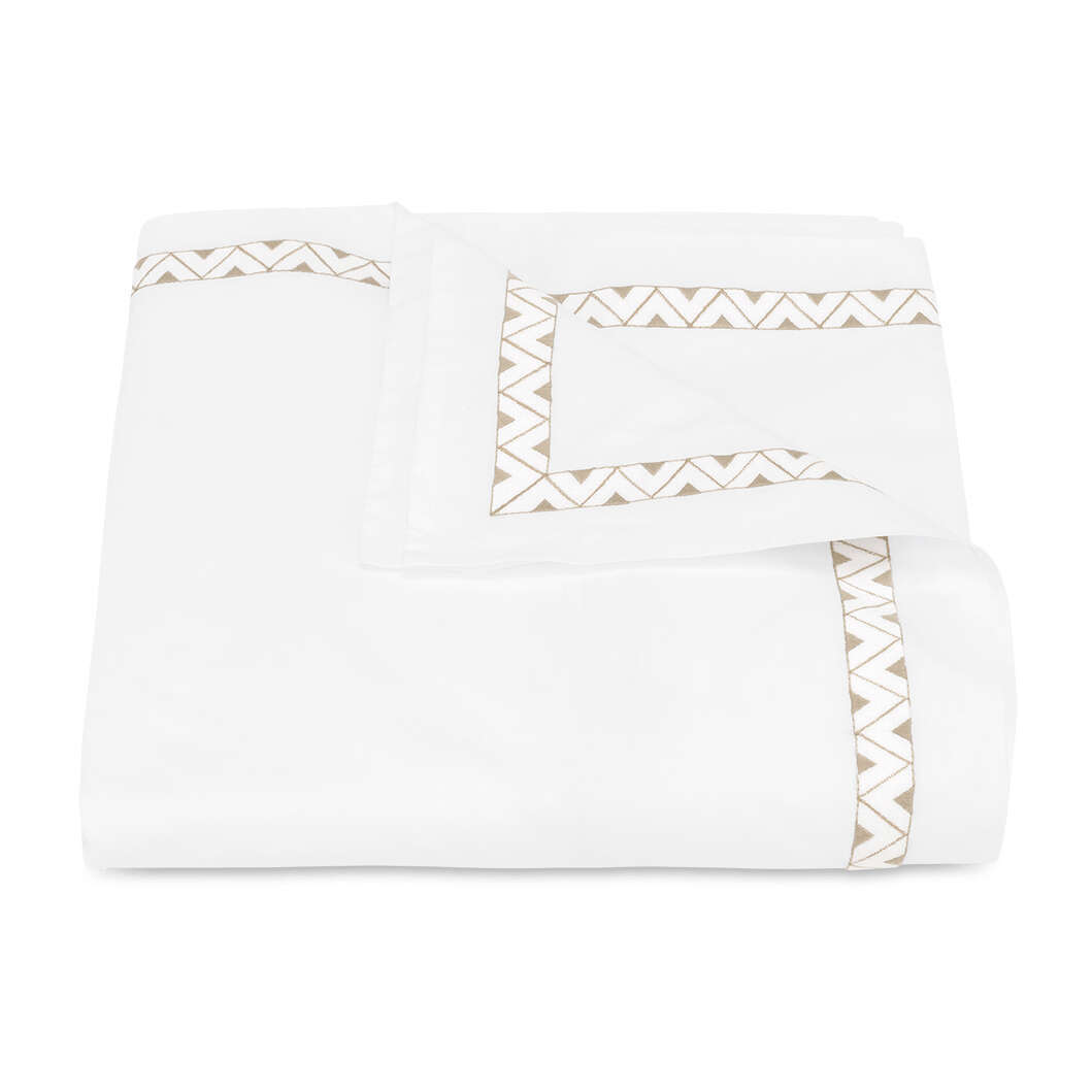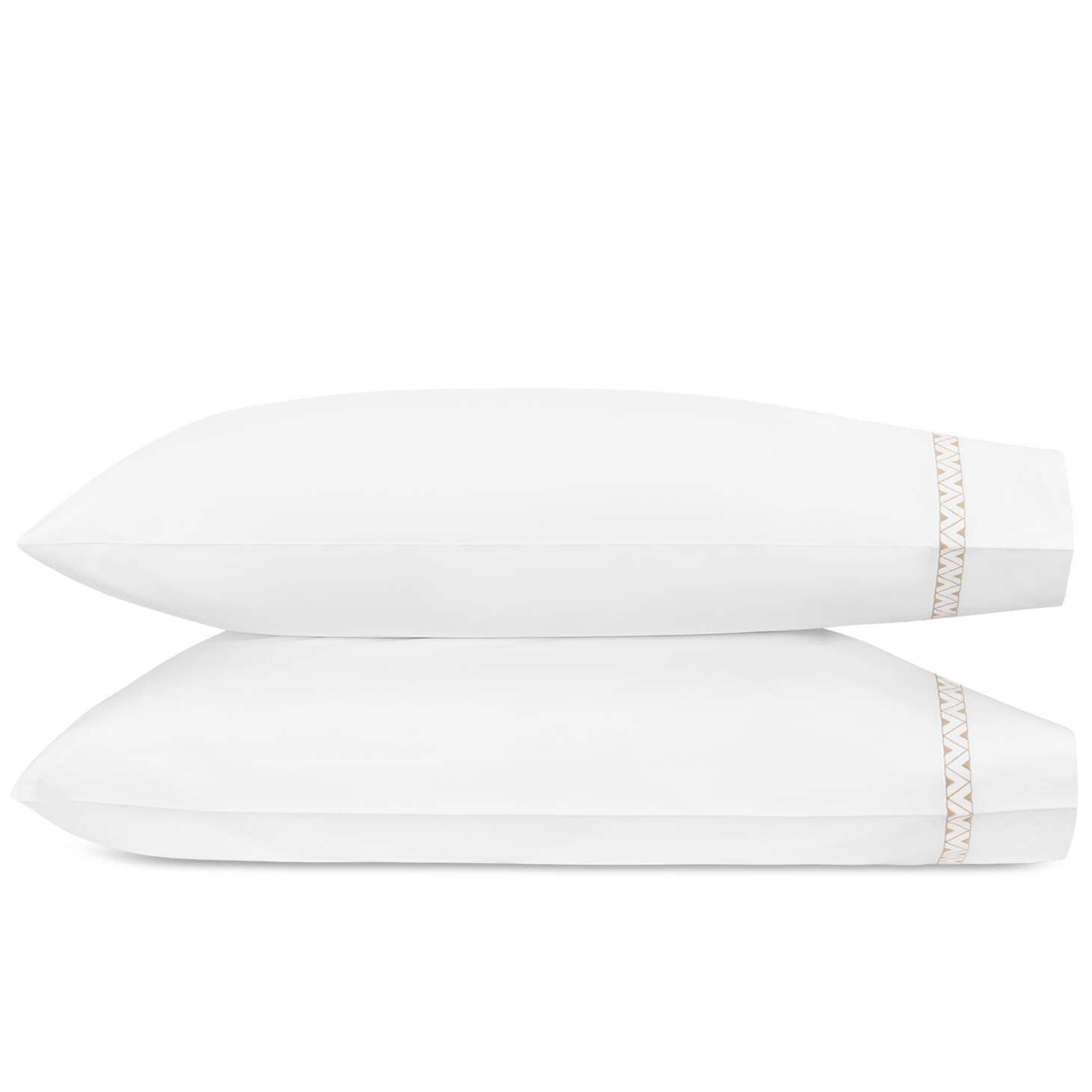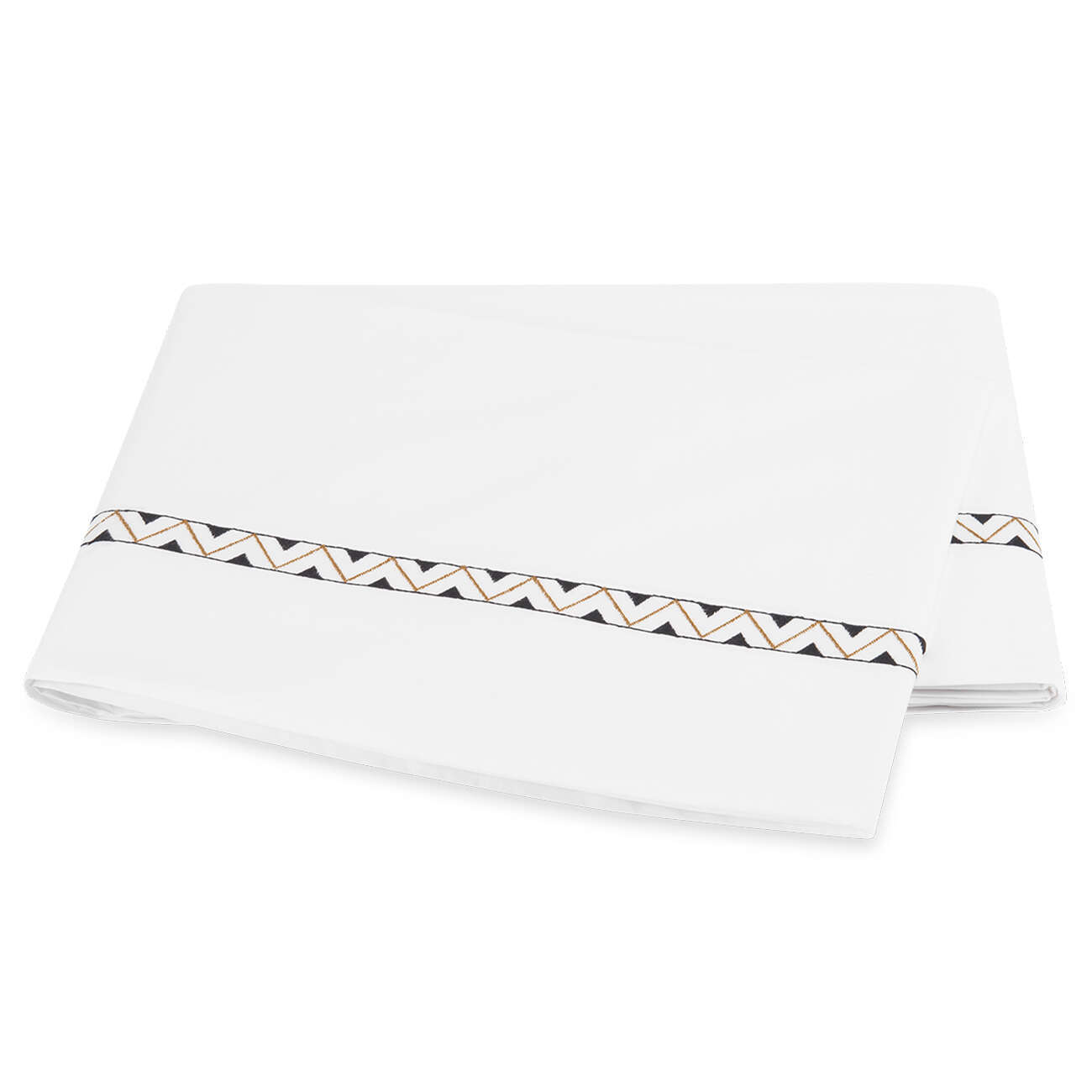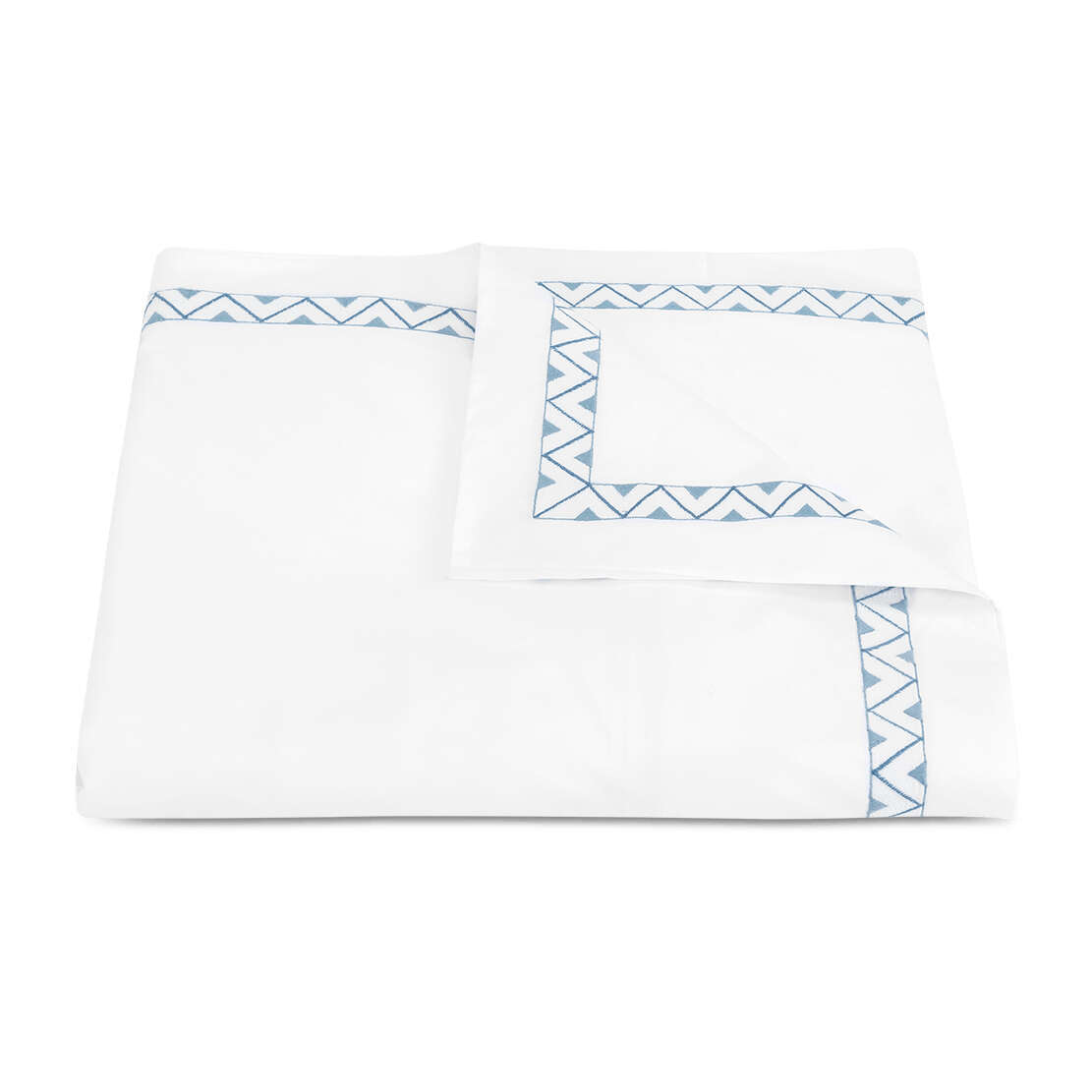Prado creatively combines a chic Schumacher design and a classic Matouk construction, with breathtaking results. We’ve placed the Prado pattern on our crisp 520 thread count Ceylon percale as we would a tape detail, but here the pattern is fully embroidered instead. The finished product has a crisp, tailored look with a delicious pop of colorful decoration.