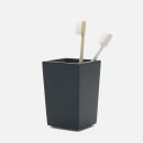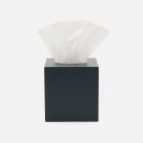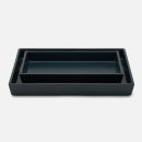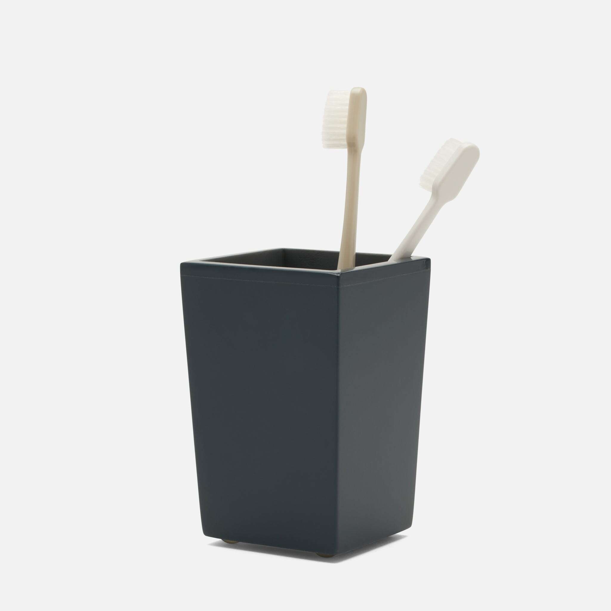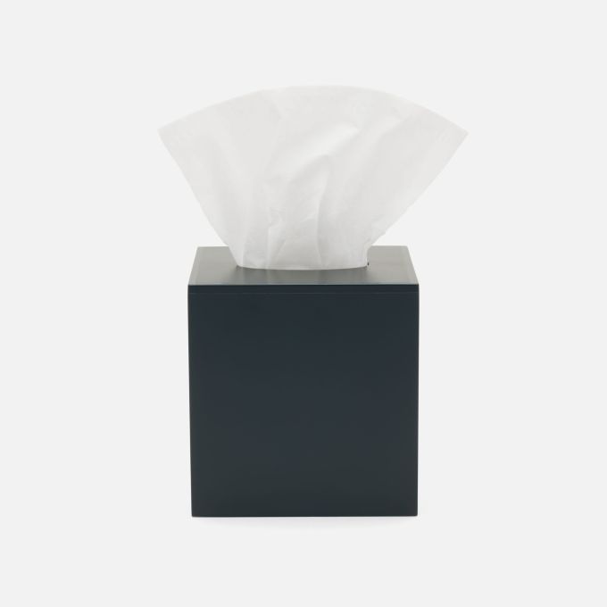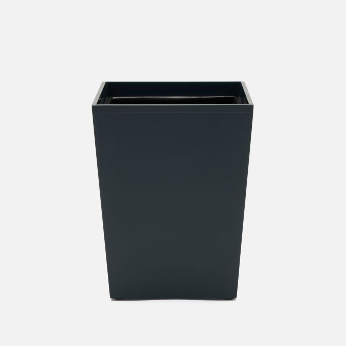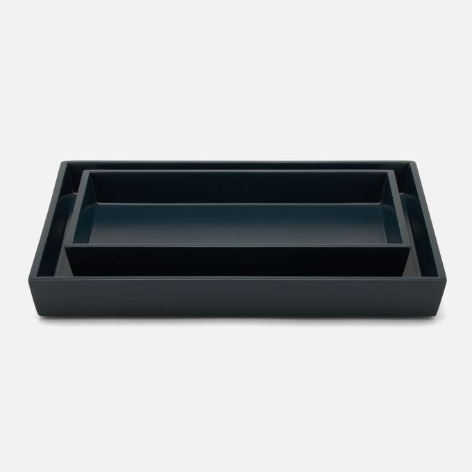 Sleek and masculine, the Quincy bath collection makes a strong impression in matte navy lacquered wood.