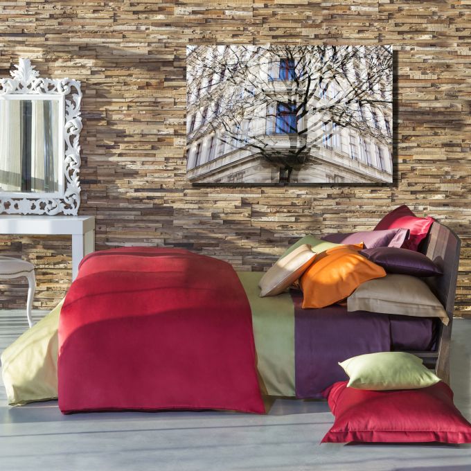 The Raffaello collection is made with 100% extra long-staple cotton sateen completely dyed in Italy granting an exceptional durability. The fabric possesses the wonderful silky touch and look that highlights the depth and light of the color. This stunning sateen 300 t.c. is available in various colors and in different sizes.