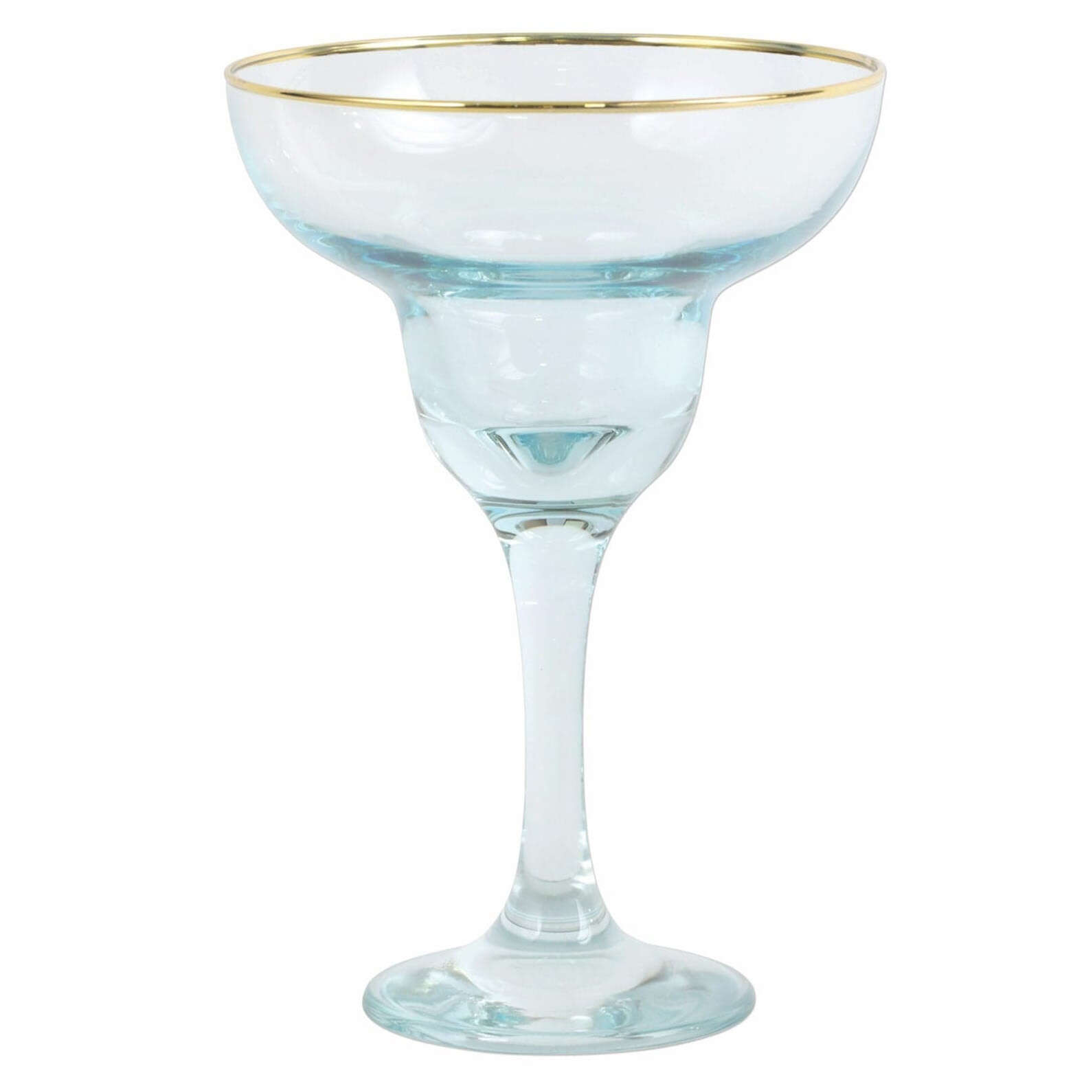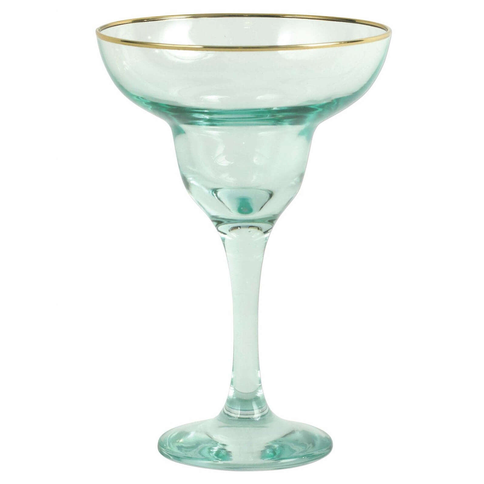 Add sparkle to any setting with a gilded gold rim and varied colored glass that refracts light on the Rainbow Margarita Glass.